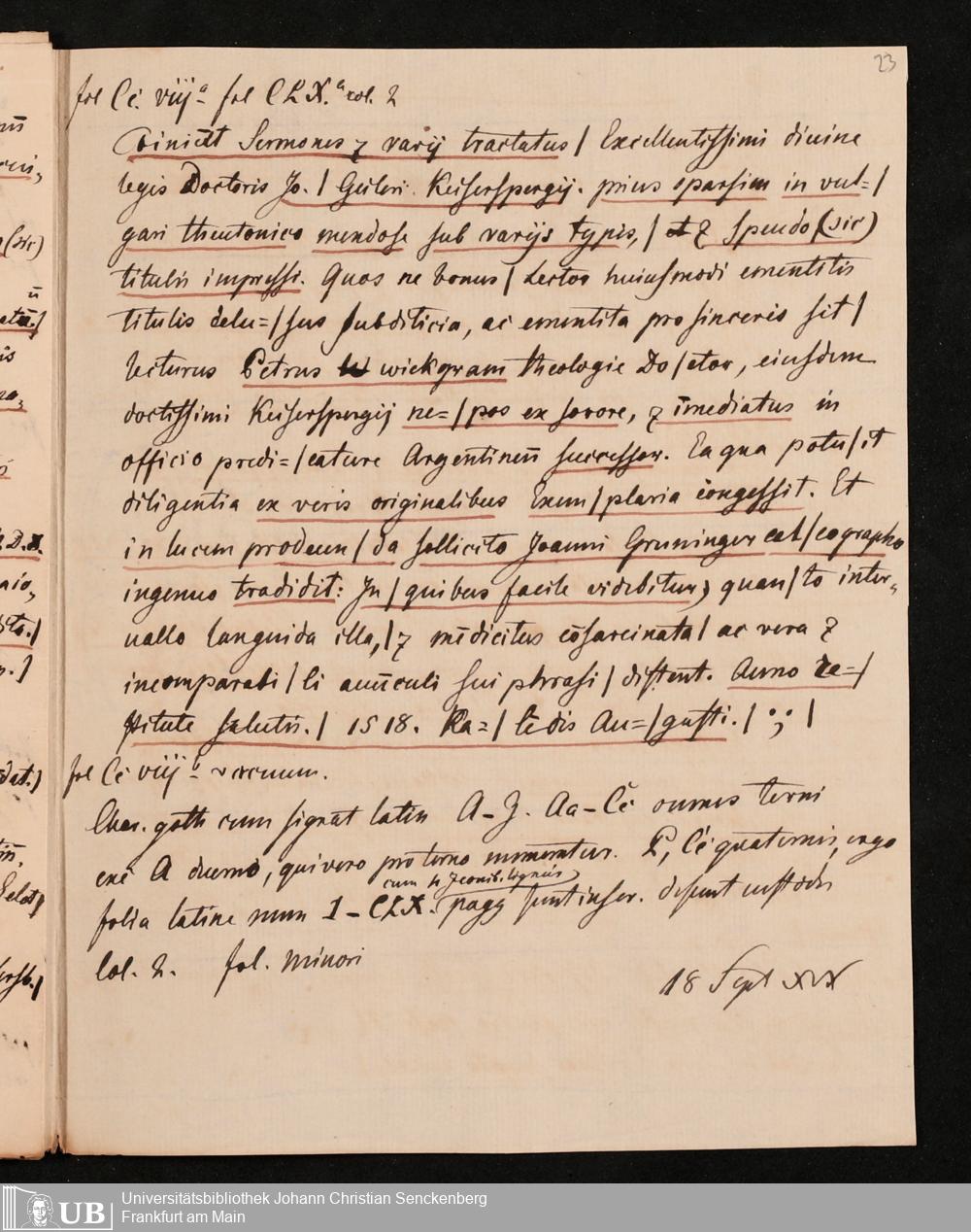 Ms. Ff. G. Kloß Nachlaßergänzung III.5 - Schriften von Gailer von Kaysersberg