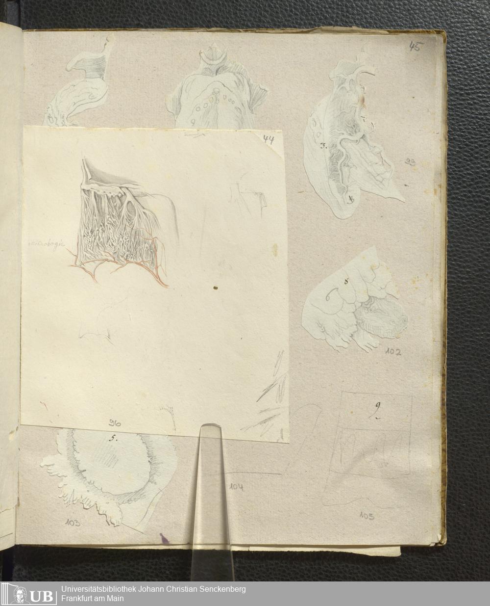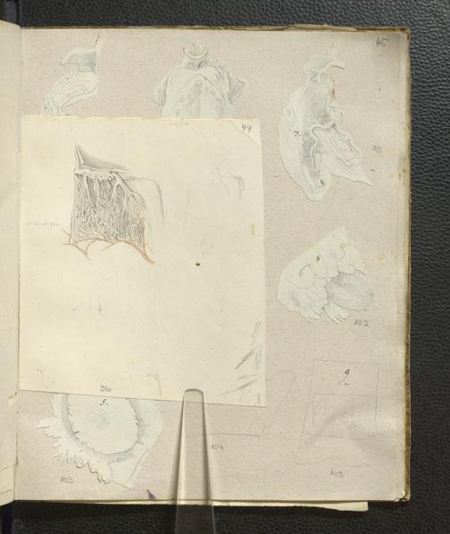 [128] 61v (montierte Zeichnung, Rückseite, eingeklappt)