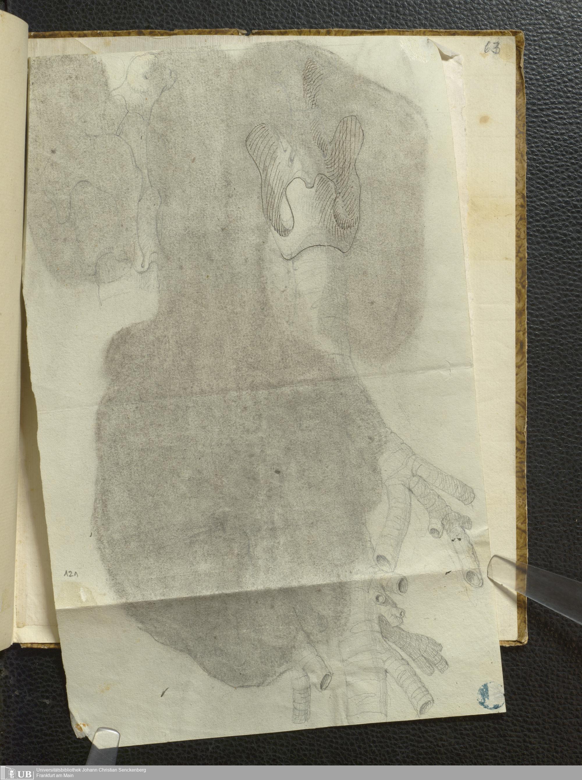 [128] 61v (montierte Zeichnung, Rückseite, eingeklappt)