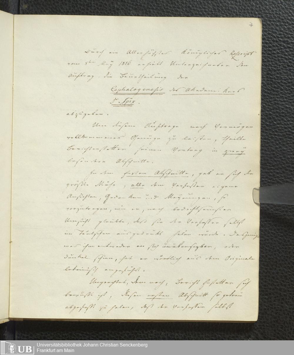 Soe 47 - Gutachten betreffend Johann Baptist von Spix: Cephalogenesis sive Capitis Ossei Structura, Formatio et Significatio per omnes Animalium Classes, Familias, Genera ac Aetates digesta, atque Tabulis illustrata, Legesque simul Psychologiae, Cranioscopiae ac Physiognomiae inde derivatae. 1815