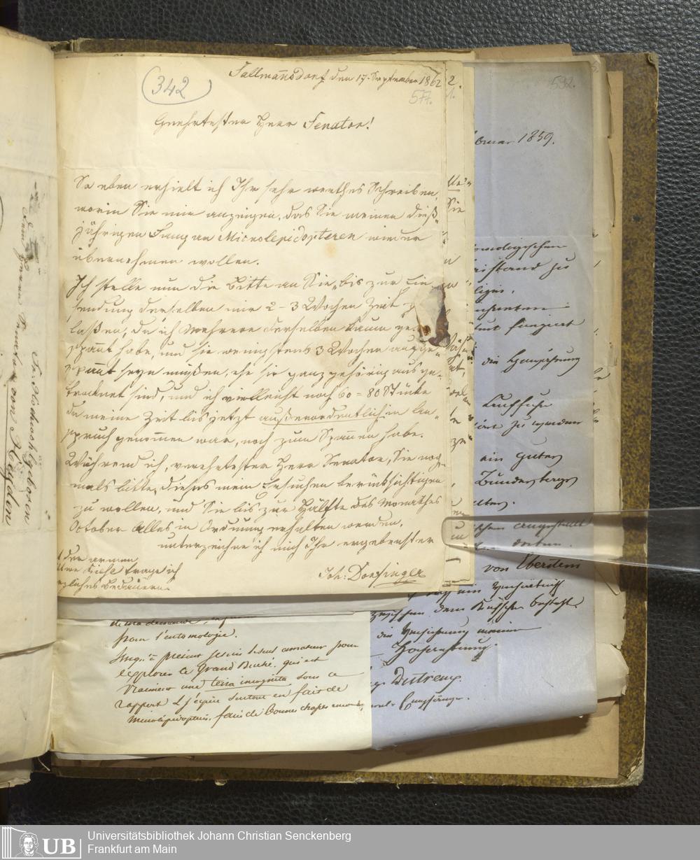 4˚ Hs 11 Bd. 1 - Entomologische Correspondenz von Karl Heinrich Georg von Heyden. A/E