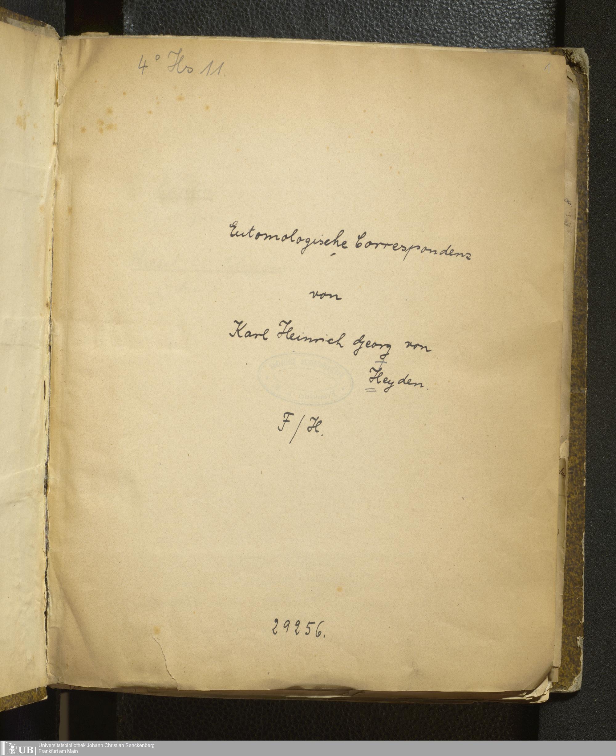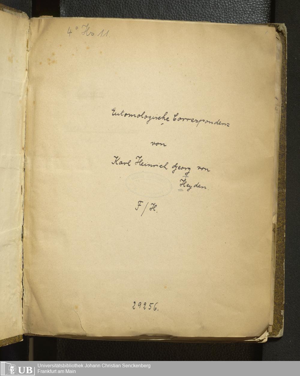 4˚ Hs 11 Bd. 2 - Entomologische Correspondenz von Karl Heinrich Georg von Heyden. F/H
