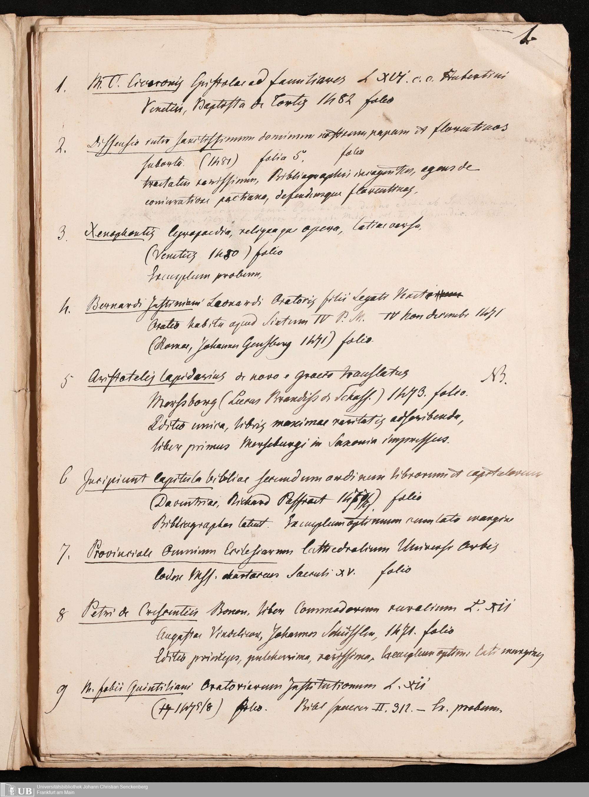 Ms. Ff. G. Kloß Nachlaßergänzung IV.1 - Titellisten, überwiegend von Inkunabeln und Drucken des 16. Jahrhunderts