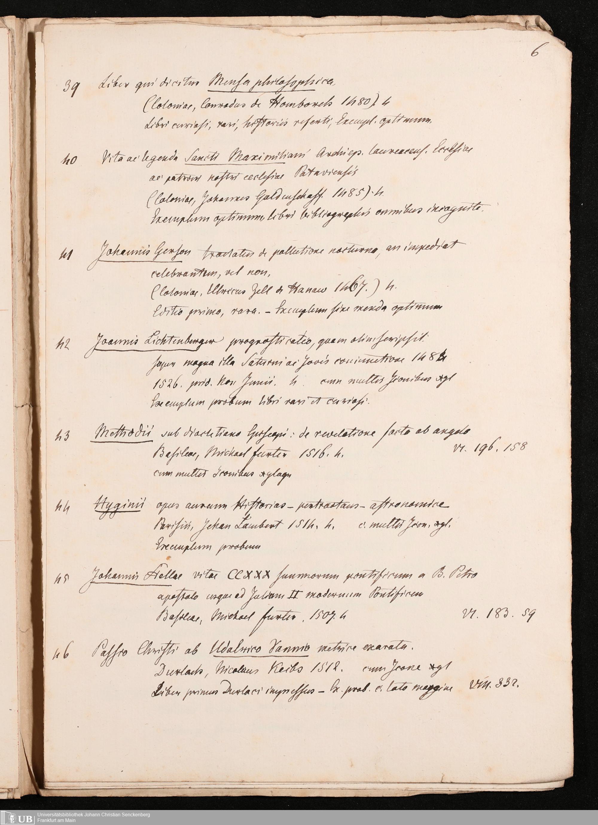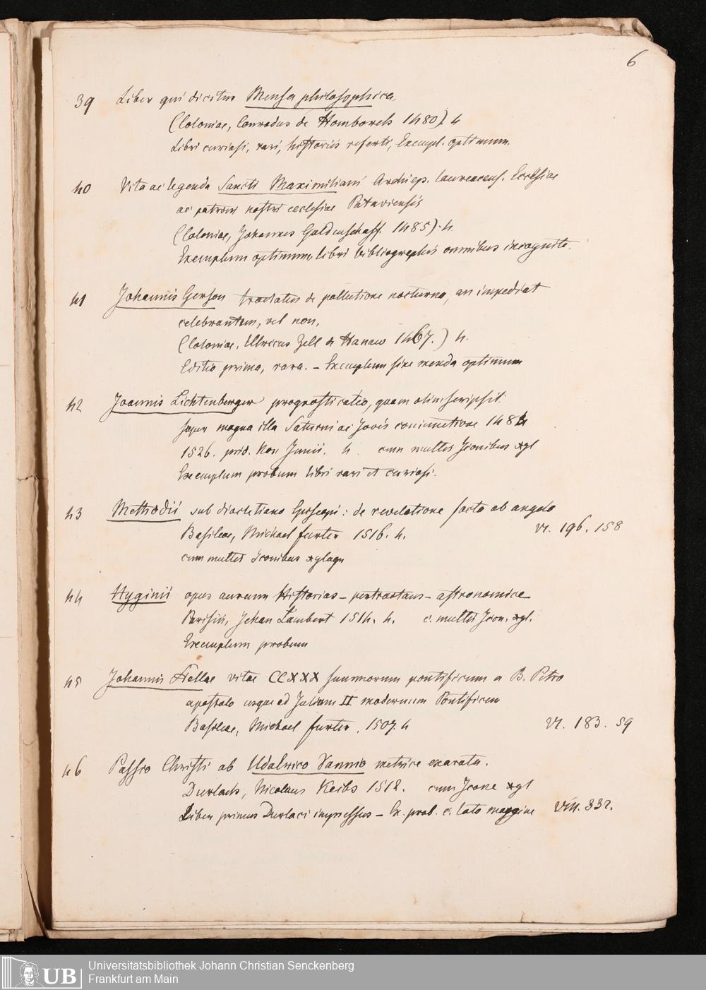 Ms. Ff. G. Kloß Nachlaßergänzung IV.1 - Titellisten, überwiegend von Inkunabeln und Drucken des 16. Jahrhunderts