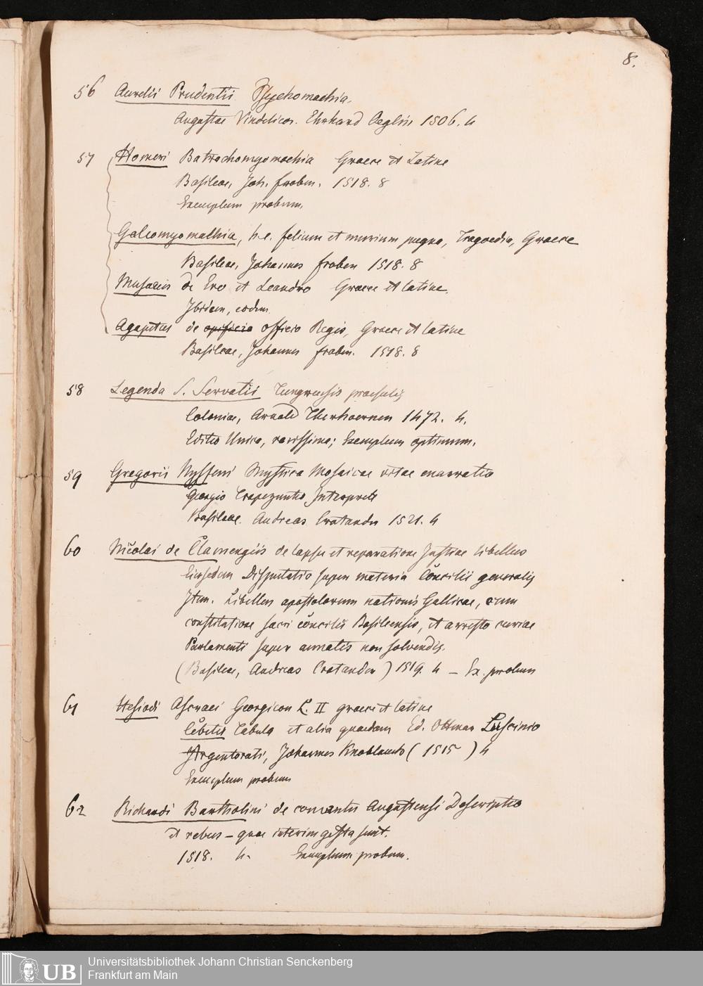 Ms. Ff. G. Kloß Nachlaßergänzung IV.1 - Titellisten, überwiegend von Inkunabeln und Drucken des 16. Jahrhunderts