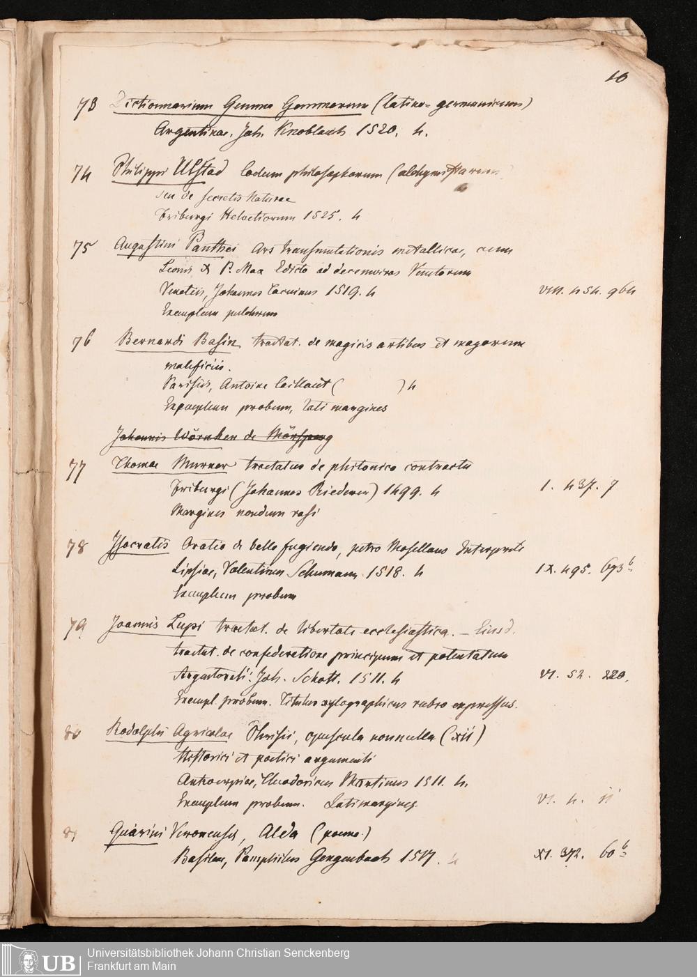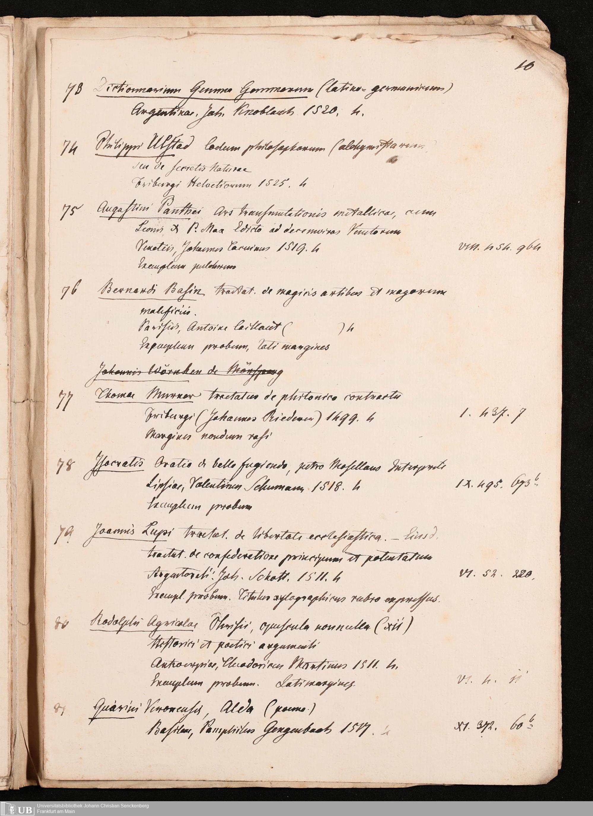 Ms. Ff. G. Kloß Nachlaßergänzung IV.1 - Titellisten, überwiegend von Inkunabeln und Drucken des 16. Jahrhunderts