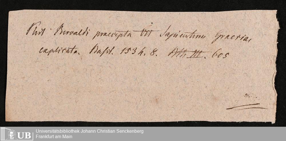 Ms. Ff. G. Kloß V.1.8 - Bibliographische und literargeschichtliche Notizen zu Texten des 16. Jahrhunderts. Mit kurzen Textauszügen