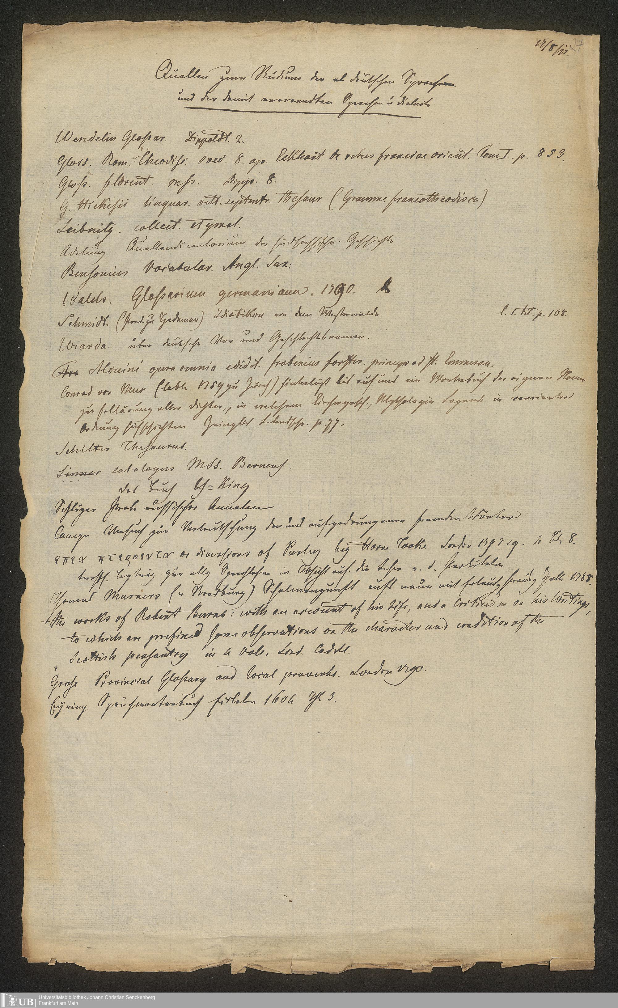 Ms. Ff. G. Kloß V.8.1 - Ad linguam vernaculam. Ursprung, Wurzelwörter und Verwandtschaften der deutschen Sprache