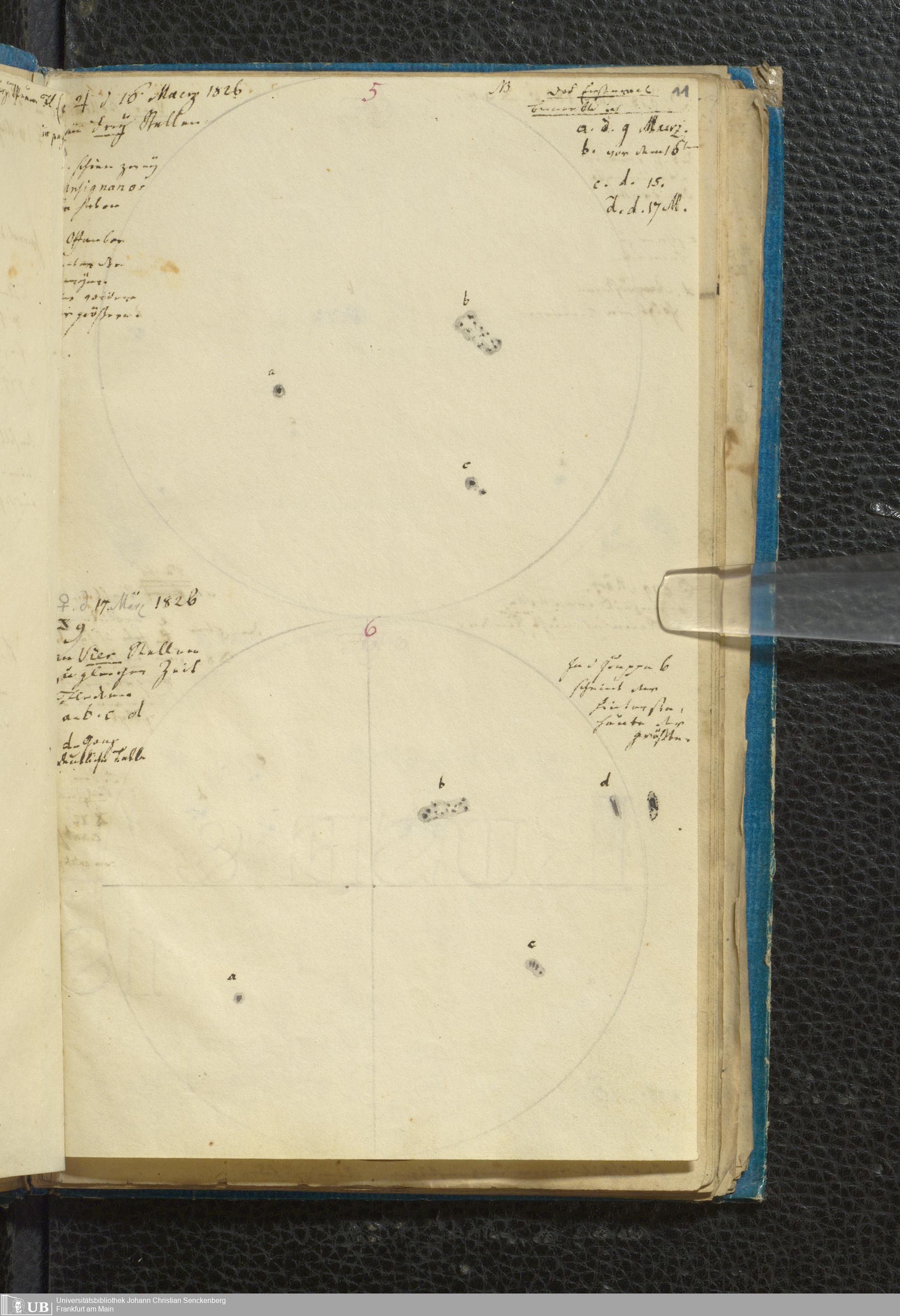 Soe 49 - Sonnen Flecken während des Jahres 1826 durch Frauenhoferische Fernröhre meist in 84maliger Vergrößerung beobachtet. Zu Frankfurt a.M.