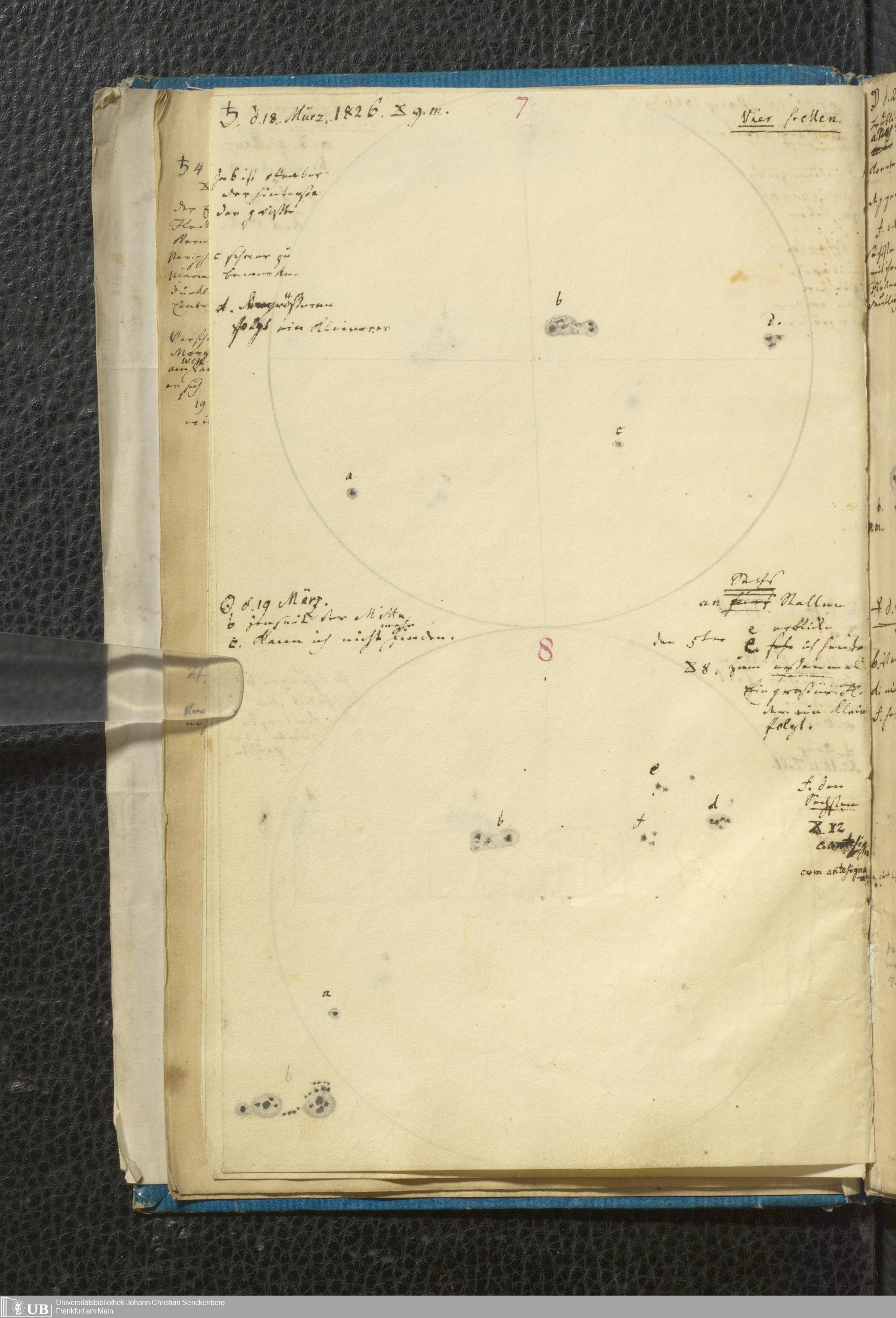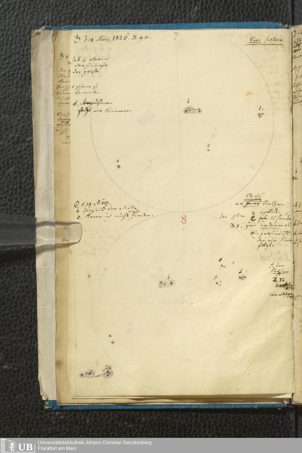 Soe 49 - Sonnen Flecken während des Jahres 1826 durch Frauenhoferische Fernröhre meist in 84maliger Vergrößerung beobachtet. Zu Frankfurt a.M.