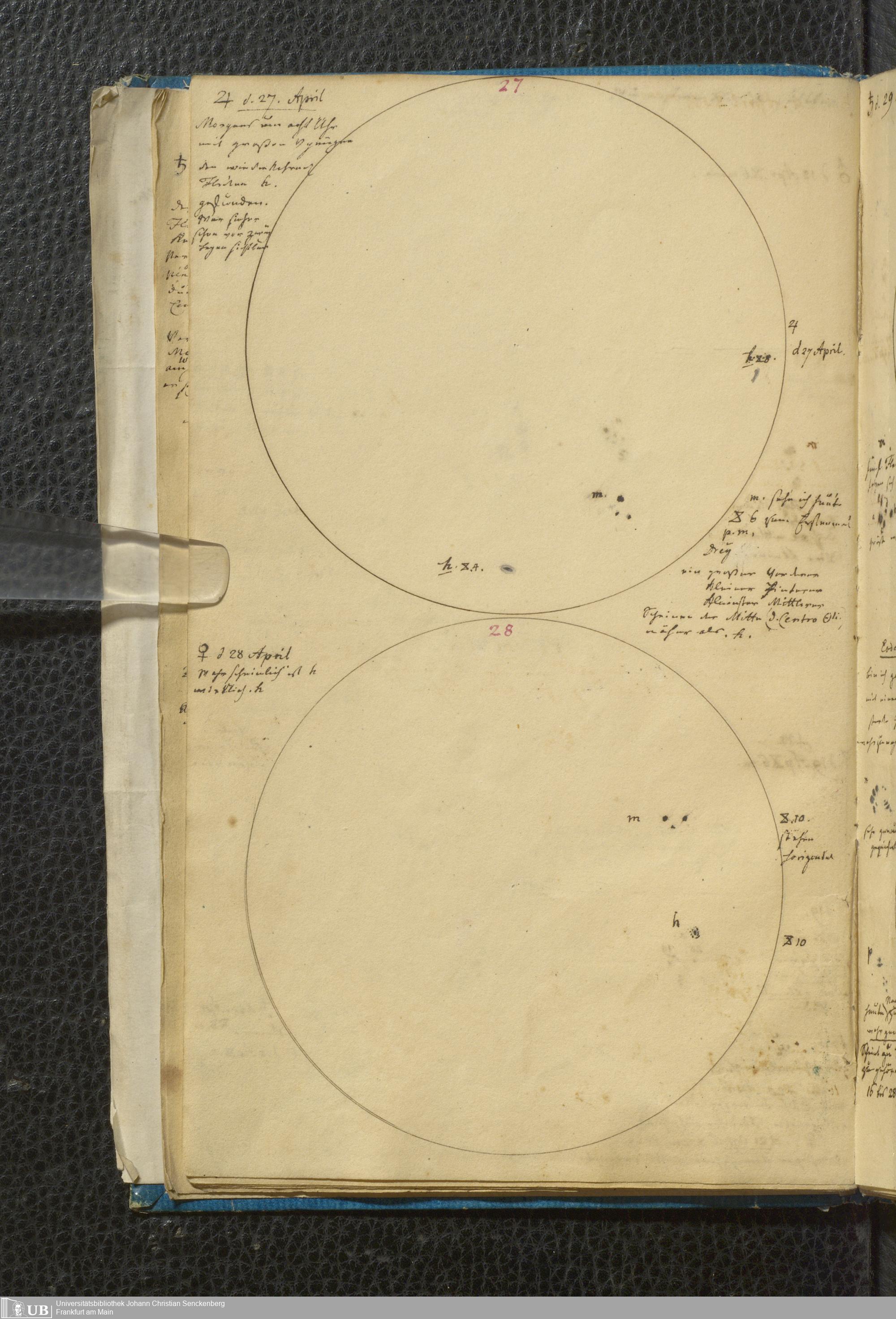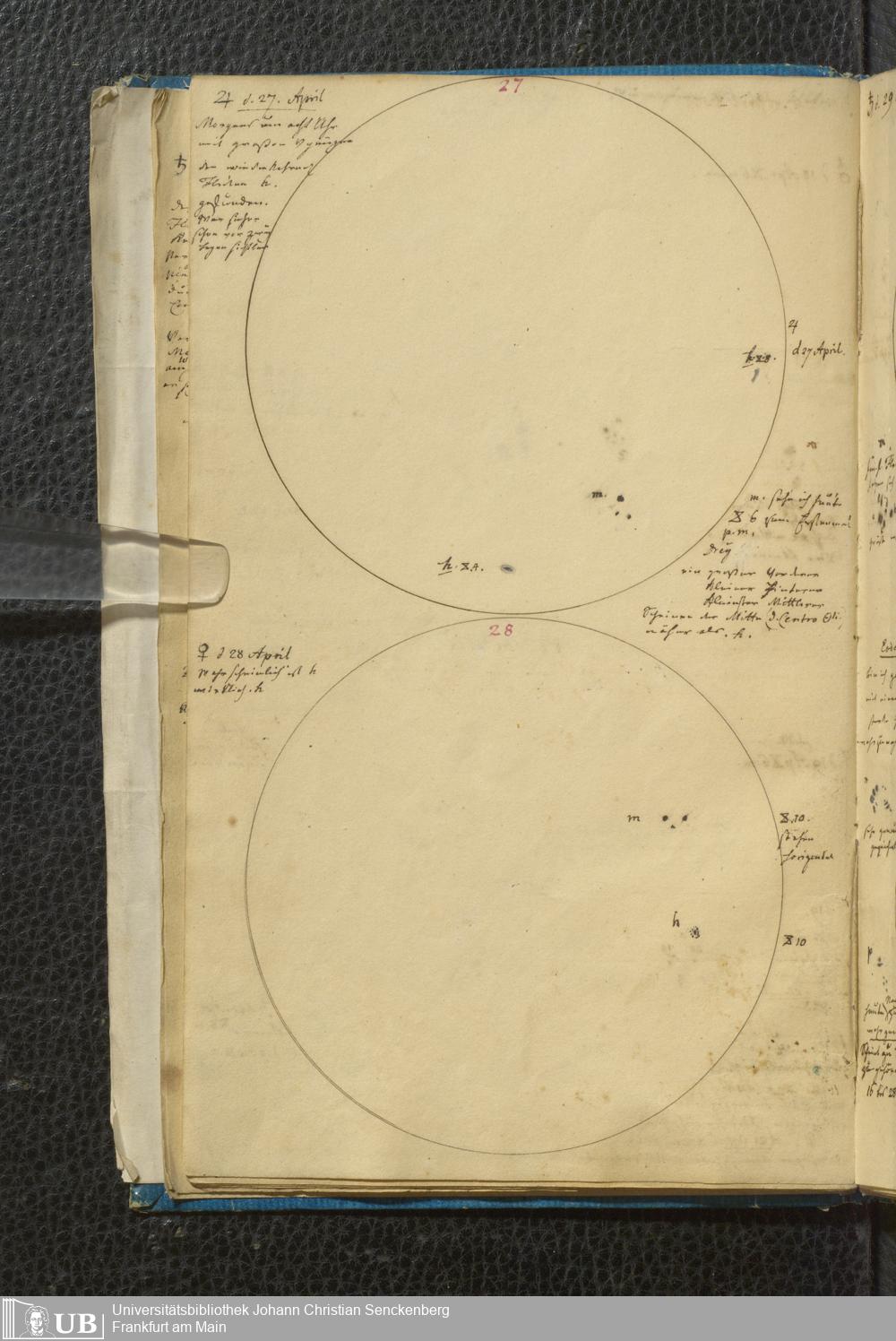 Soe 49 - Sonnen Flecken während des Jahres 1826 durch Frauenhoferische Fernröhre meist in 84maliger Vergrößerung beobachtet. Zu Frankfurt a.M.