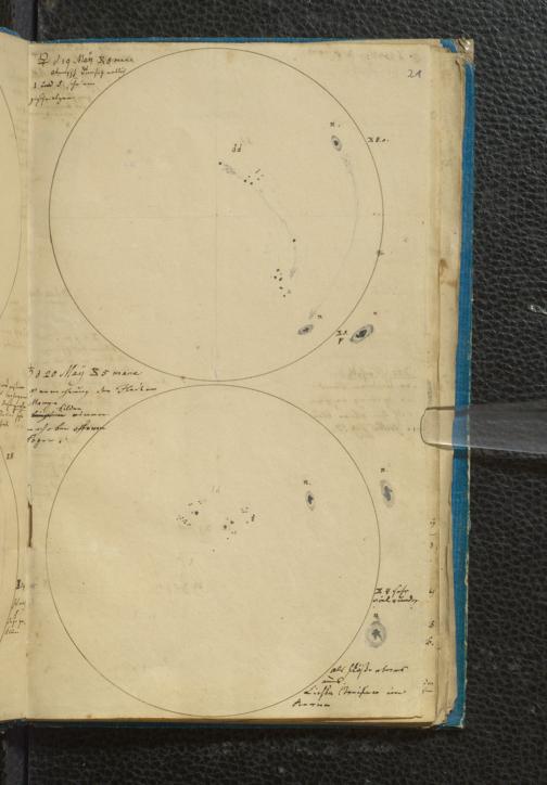 Soe 49 - Sonnen Flecken während des Jahres 1826 durch Frauenhoferische Fernröhre meist in 84maliger Vergrößerung beobachtet. Zu Frankfurt a.M.