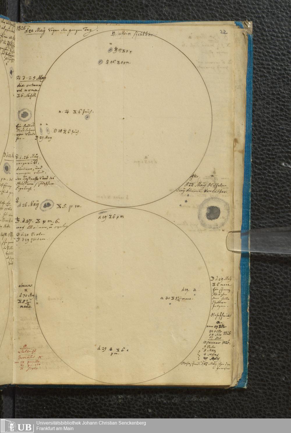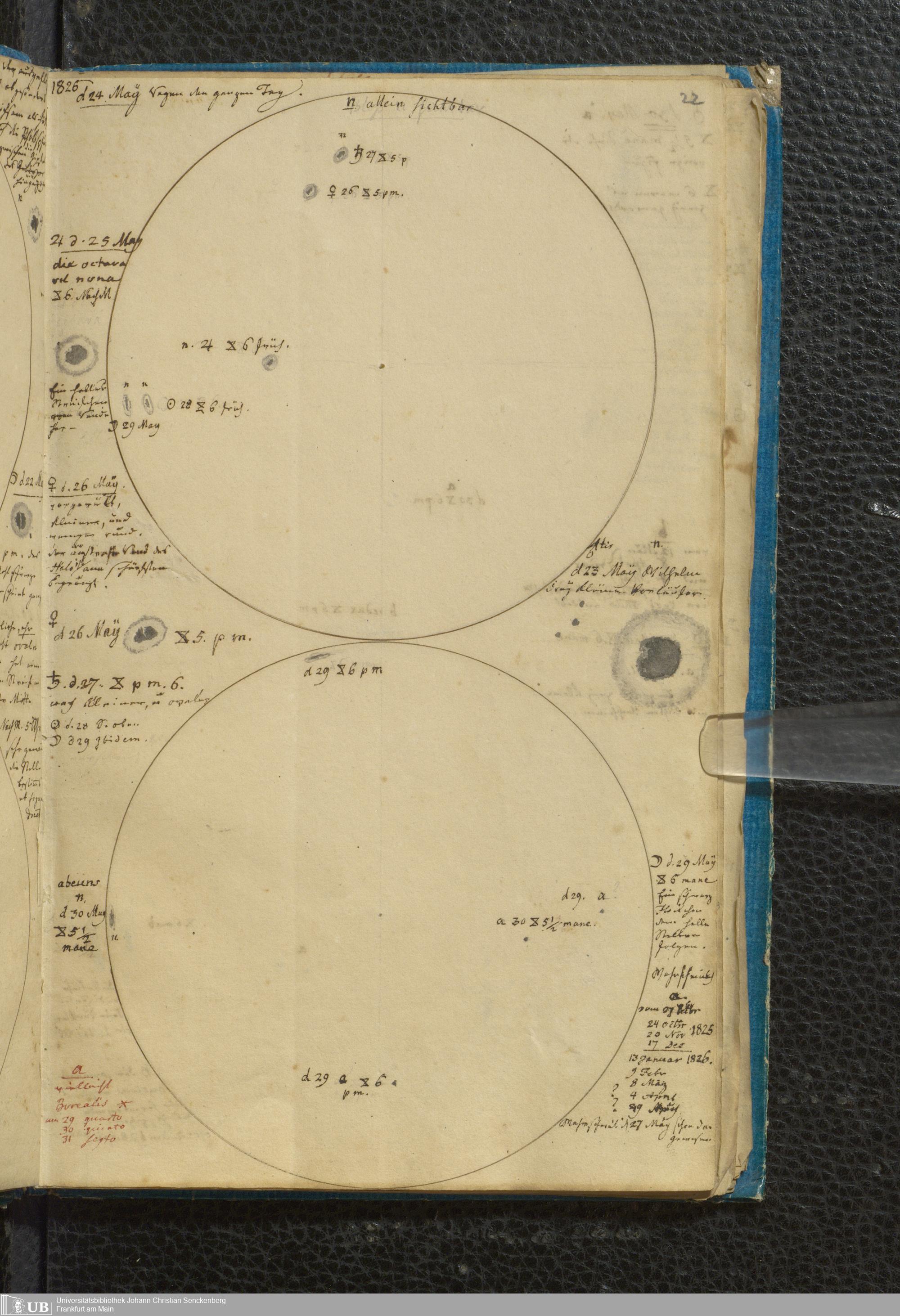 Soe 49 - Sonnen Flecken während des Jahres 1826 durch Frauenhoferische Fernröhre meist in 84maliger Vergrößerung beobachtet. Zu Frankfurt a.M.