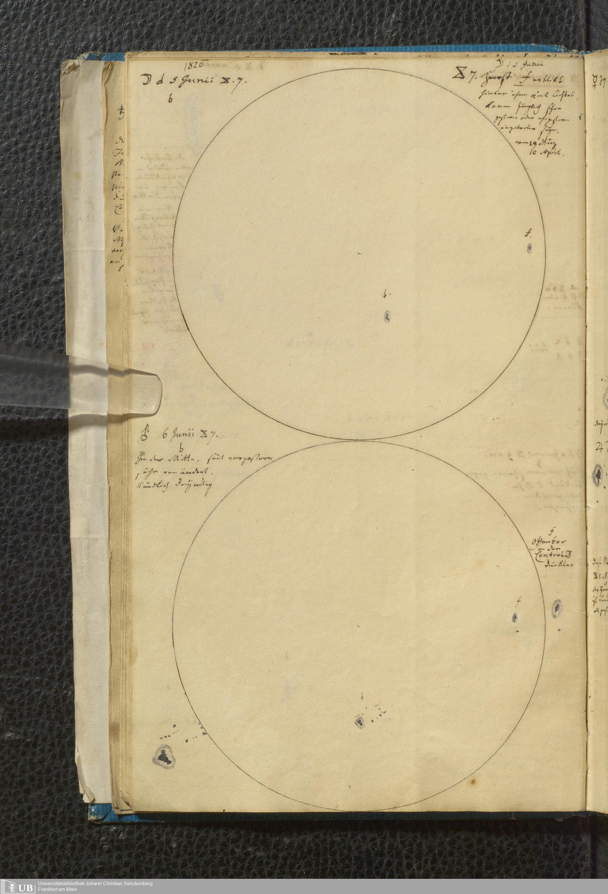 Soe 49 - Sonnen Flecken während des Jahres 1826 durch Frauenhoferische Fernröhre meist in 84maliger Vergrößerung beobachtet. Zu Frankfurt a.M.