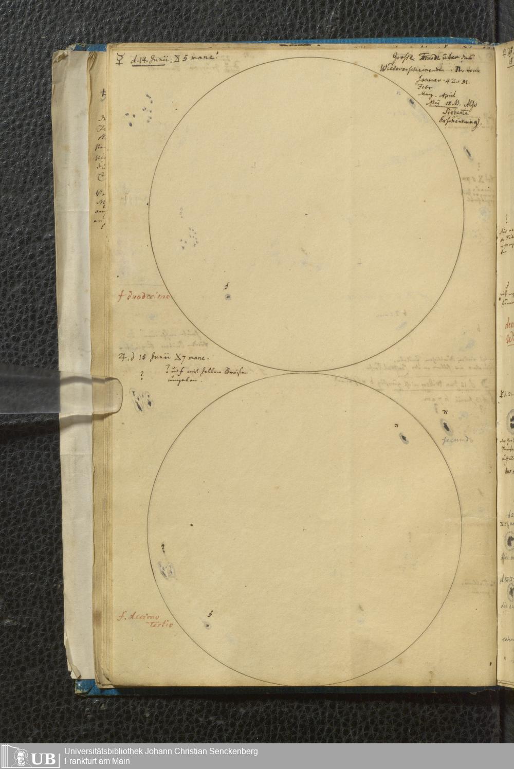 Soe 49 - Sonnen Flecken während des Jahres 1826 durch Frauenhoferische Fernröhre meist in 84maliger Vergrößerung beobachtet. Zu Frankfurt a.M.