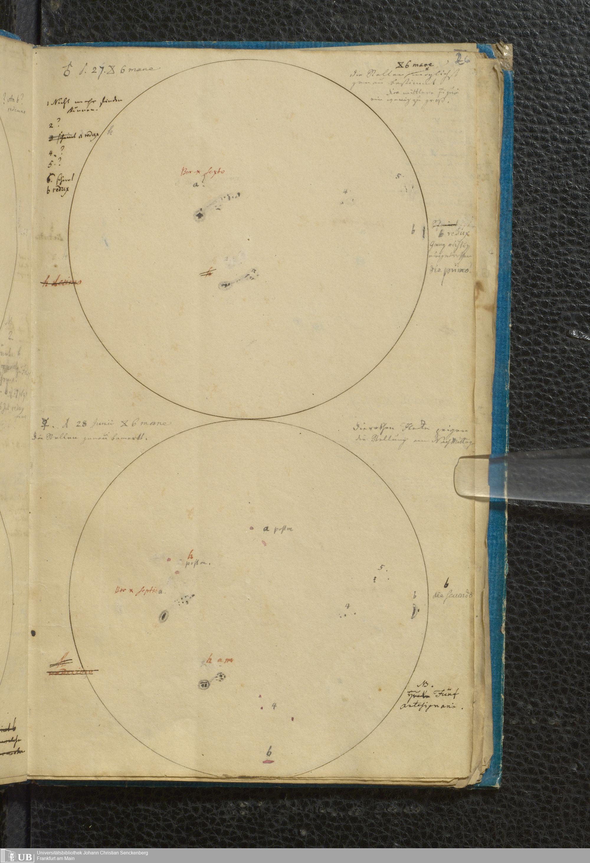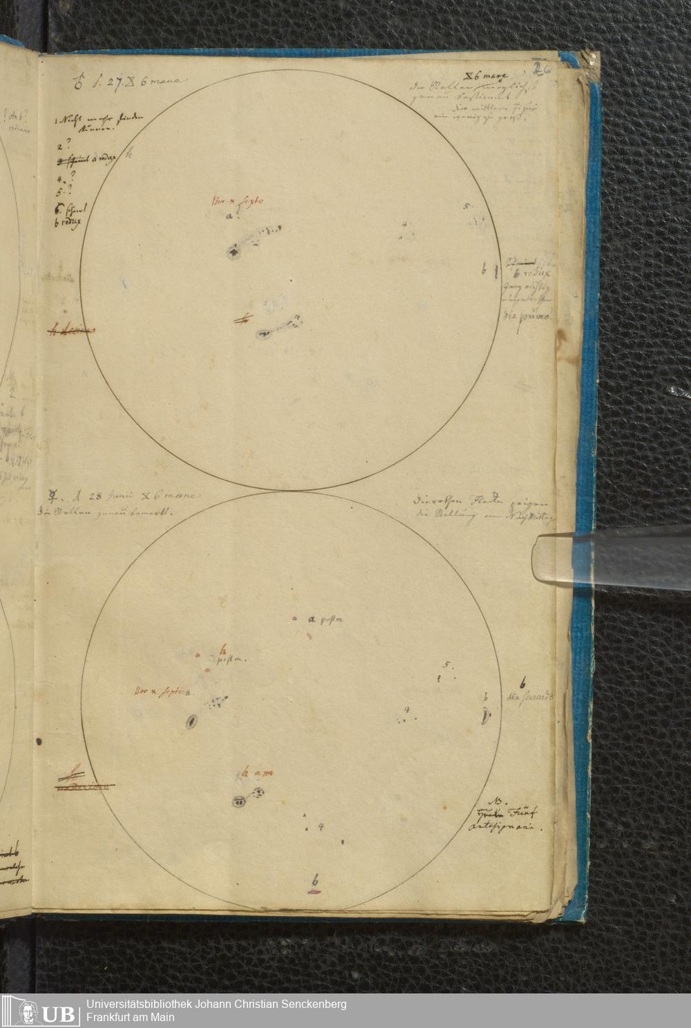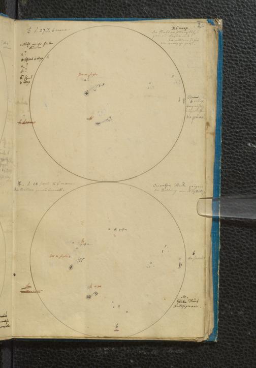 Soe 49 - Sonnen Flecken während des Jahres 1826 durch Frauenhoferische Fernröhre meist in 84maliger Vergrößerung beobachtet. Zu Frankfurt a.M.