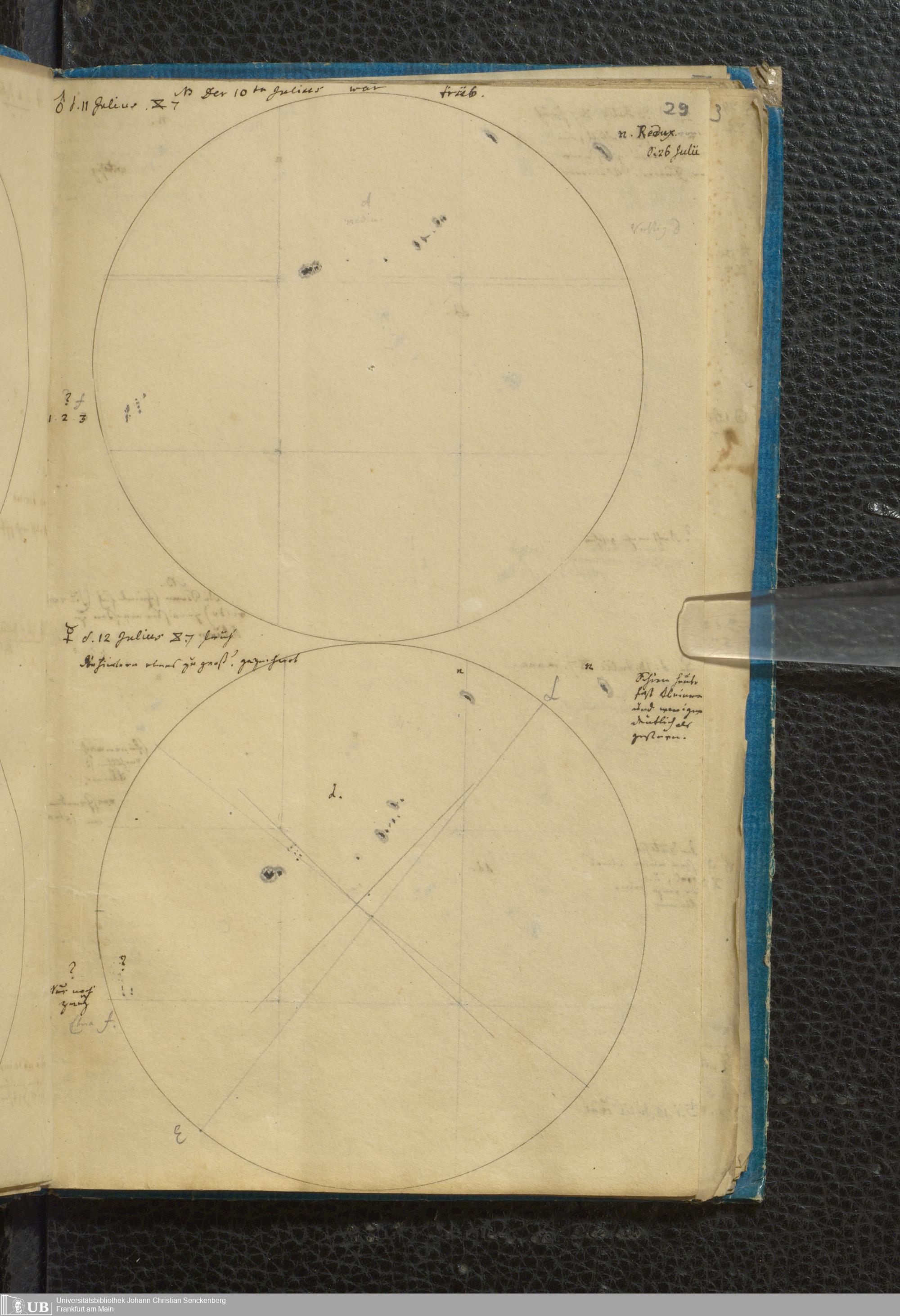 Soe 49 - Sonnen Flecken während des Jahres 1826 durch Frauenhoferische Fernröhre meist in 84maliger Vergrößerung beobachtet. Zu Frankfurt a.M.