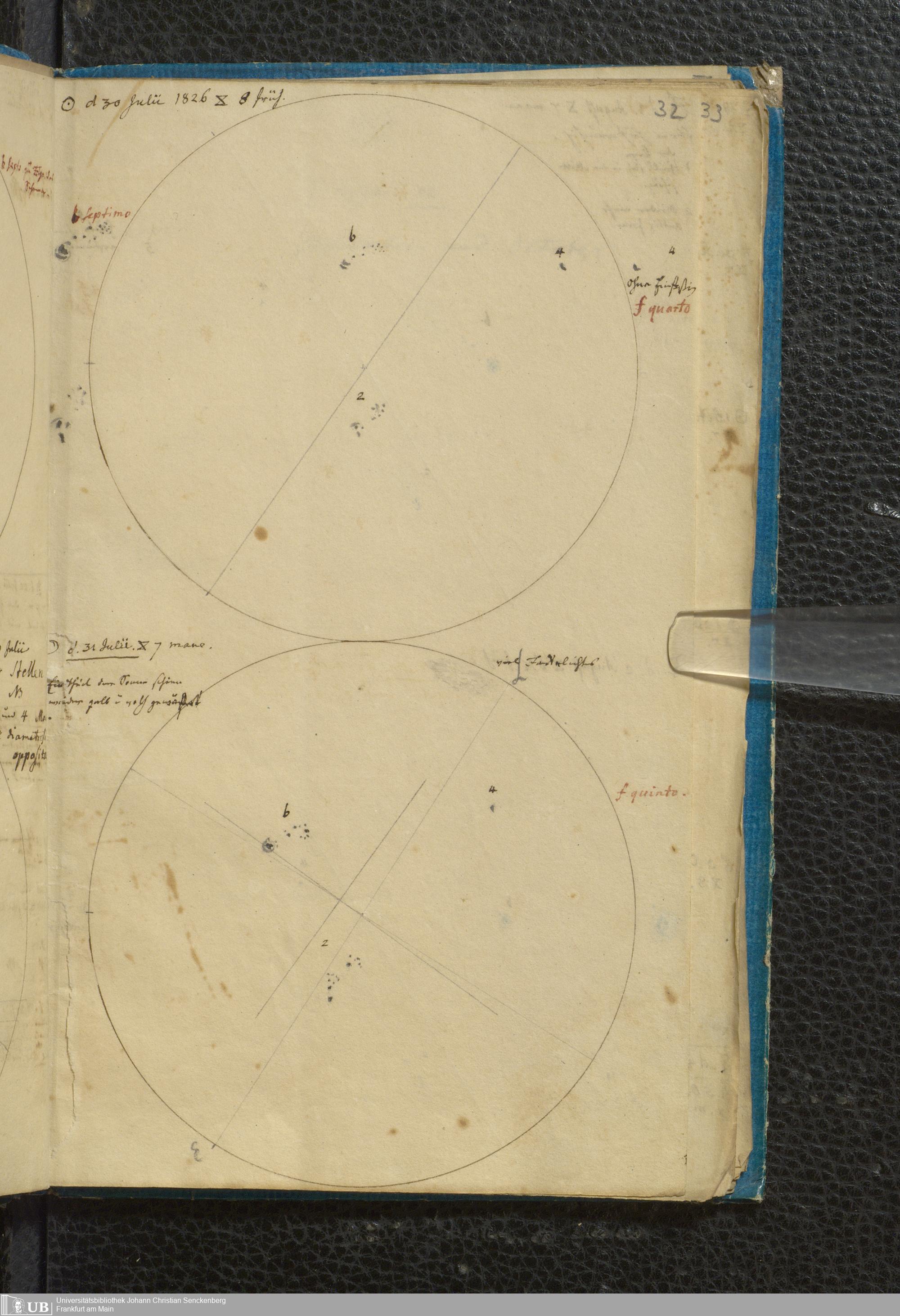 Soe 49 - Sonnen Flecken während des Jahres 1826 durch Frauenhoferische Fernröhre meist in 84maliger Vergrößerung beobachtet. Zu Frankfurt a.M.