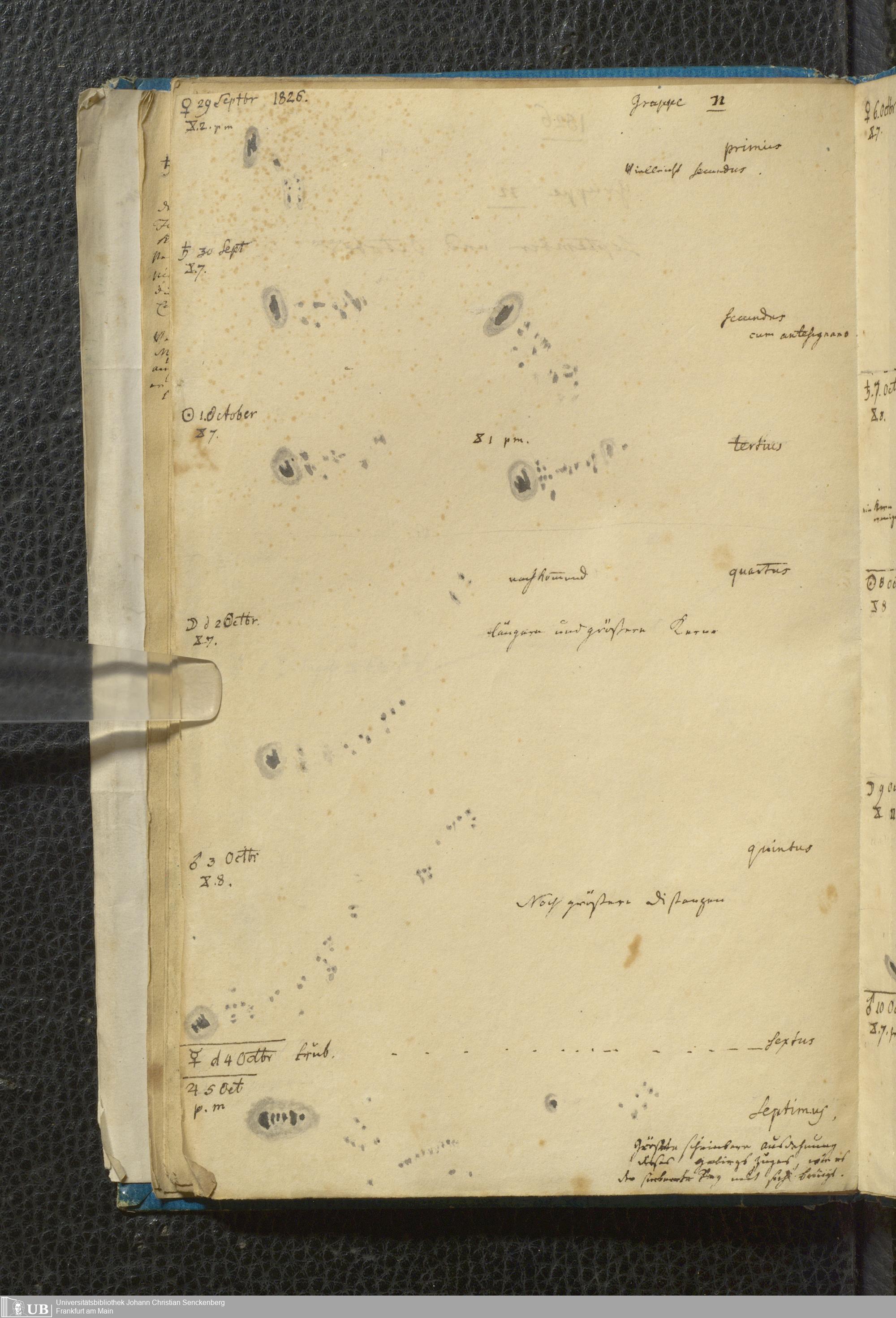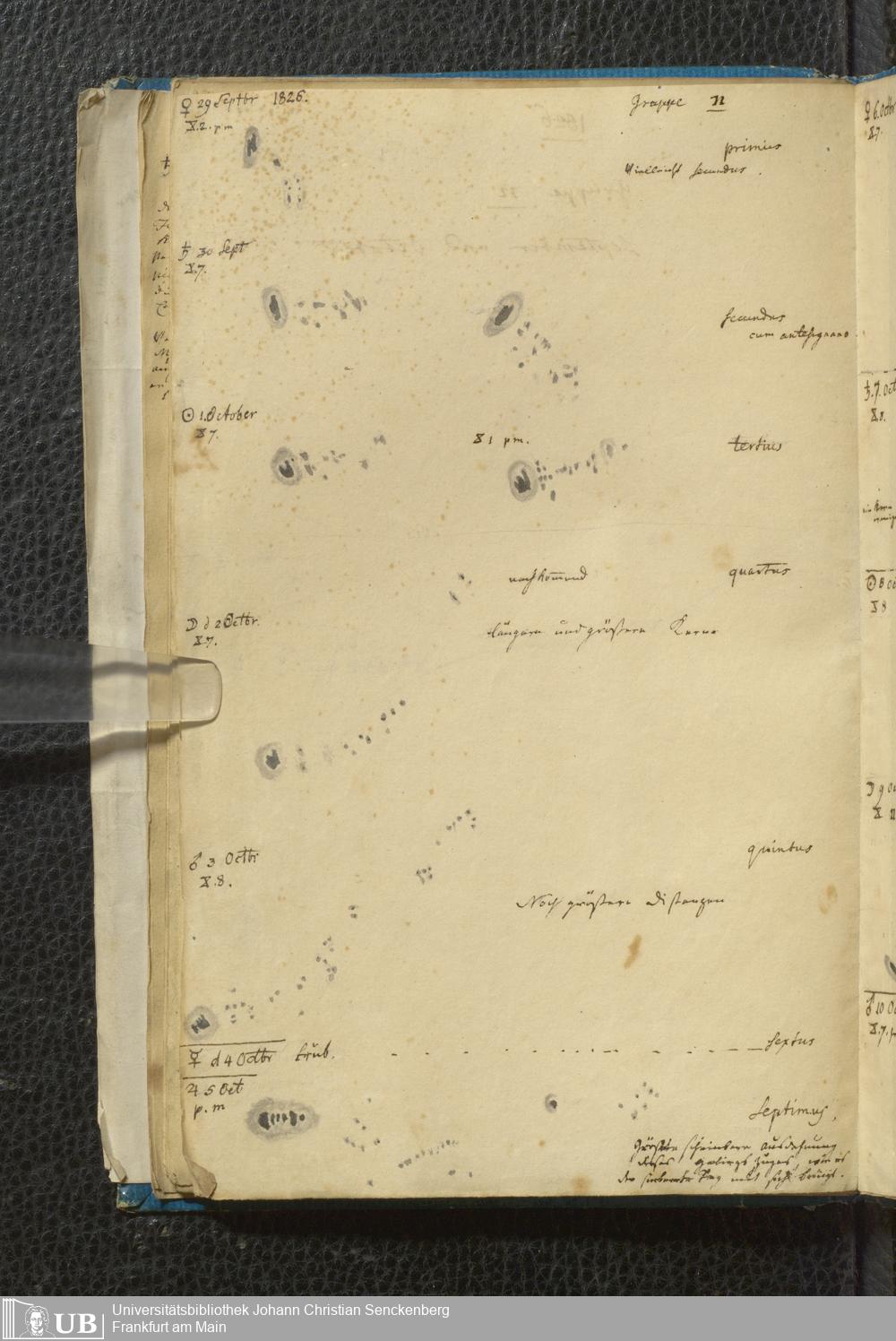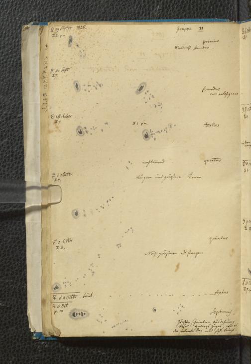 Soe 49 - Sonnen Flecken während des Jahres 1826 durch Frauenhoferische Fernröhre meist in 84maliger Vergrößerung beobachtet. Zu Frankfurt a.M.