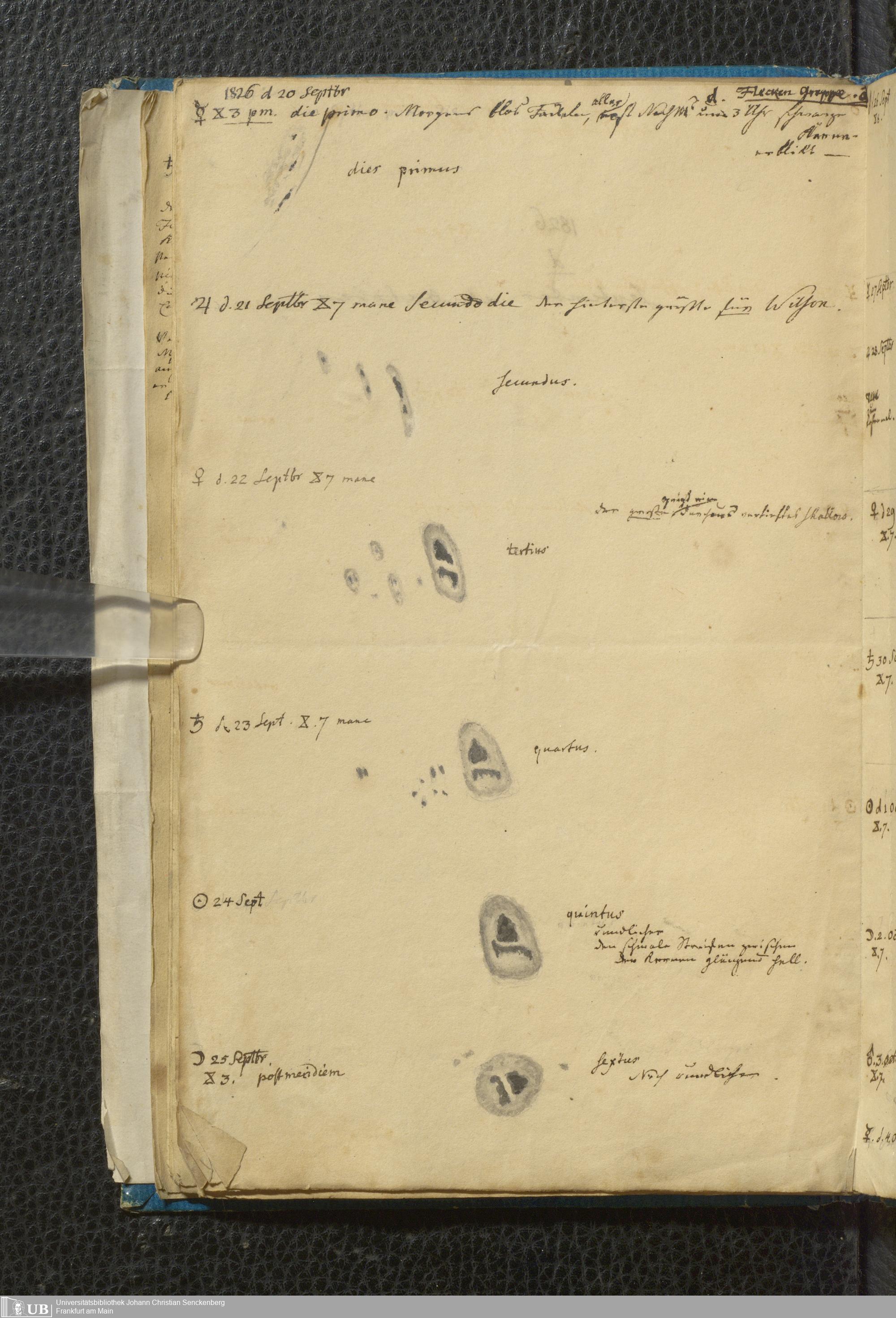 Soe 49 - Sonnen Flecken während des Jahres 1826 durch Frauenhoferische Fernröhre meist in 84maliger Vergrößerung beobachtet. Zu Frankfurt a.M.