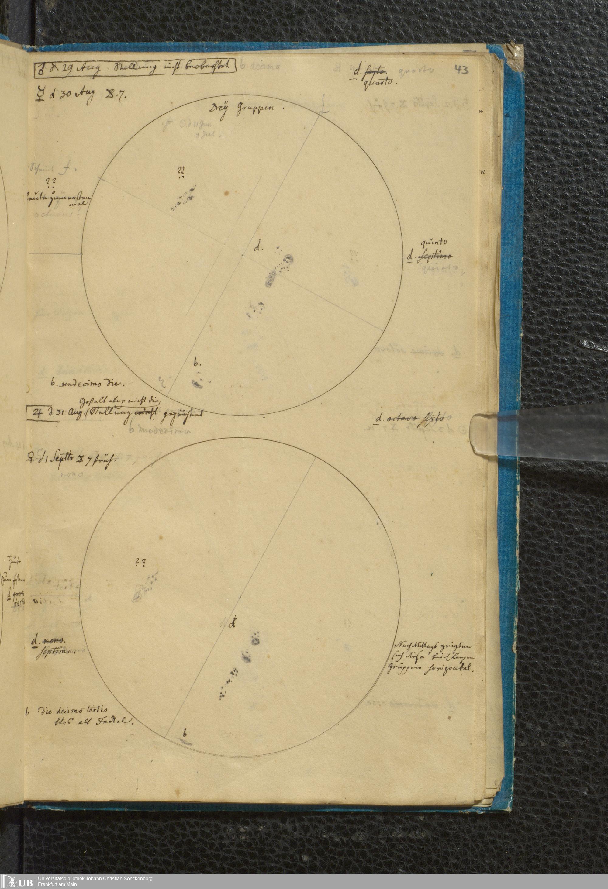 Soe 49 - Sonnen Flecken während des Jahres 1826 durch Frauenhoferische Fernröhre meist in 84maliger Vergrößerung beobachtet. Zu Frankfurt a.M.