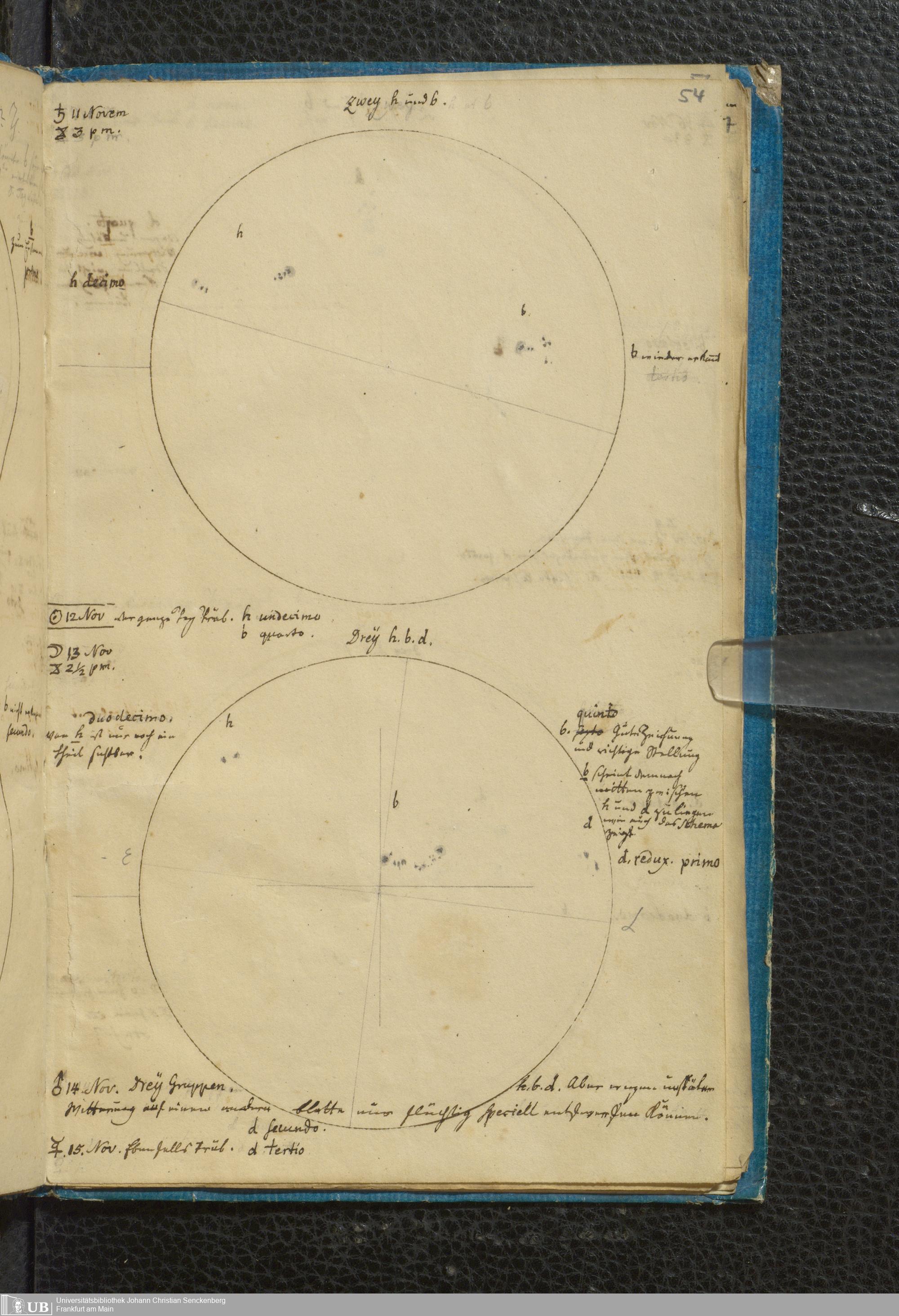 Soe 49 - Sonnen Flecken während des Jahres 1826 durch Frauenhoferische Fernröhre meist in 84maliger Vergrößerung beobachtet. Zu Frankfurt a.M.