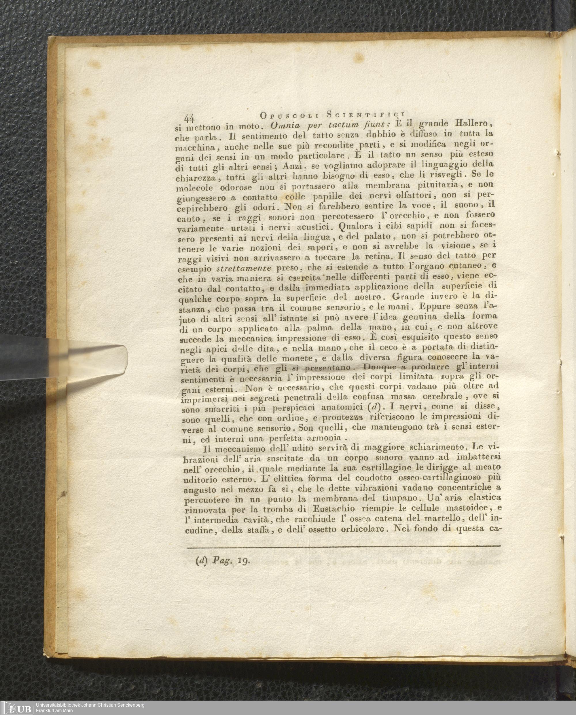 Soe 48 - Foramen centrale. Handexemplar von: Il Discorso del Dottore Felice Santis, Professore di medicina nella Università, Sull’uso, ed officio del Punto scoperto da Soemering nel fondo dell’occhio umano. Perugia, 1816. Mit umfangreichen Notizen/Exzerpten Soemmerrings.
