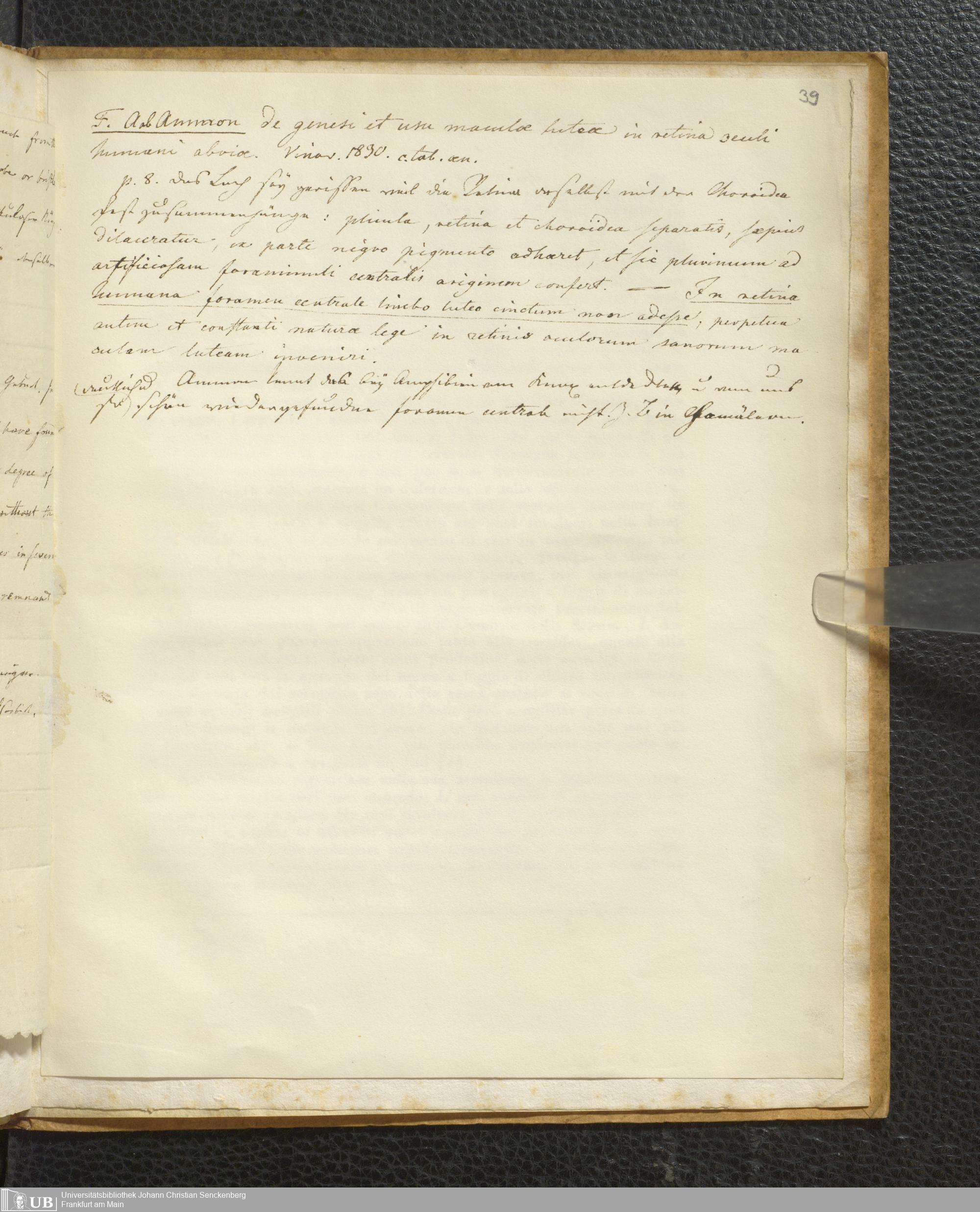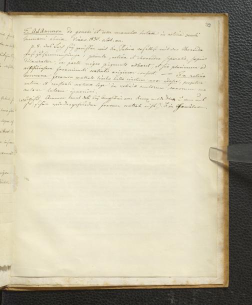 Soe 48 - Foramen centrale. Handexemplar von: Il Discorso del Dottore Felice Santis, Professore di medicina nella Università, Sull’uso, ed officio del Punto scoperto da Soemering nel fondo dell’occhio umano. Perugia, 1816. Mit umfangreichen Notizen/Exzerpten Soemmerrings.