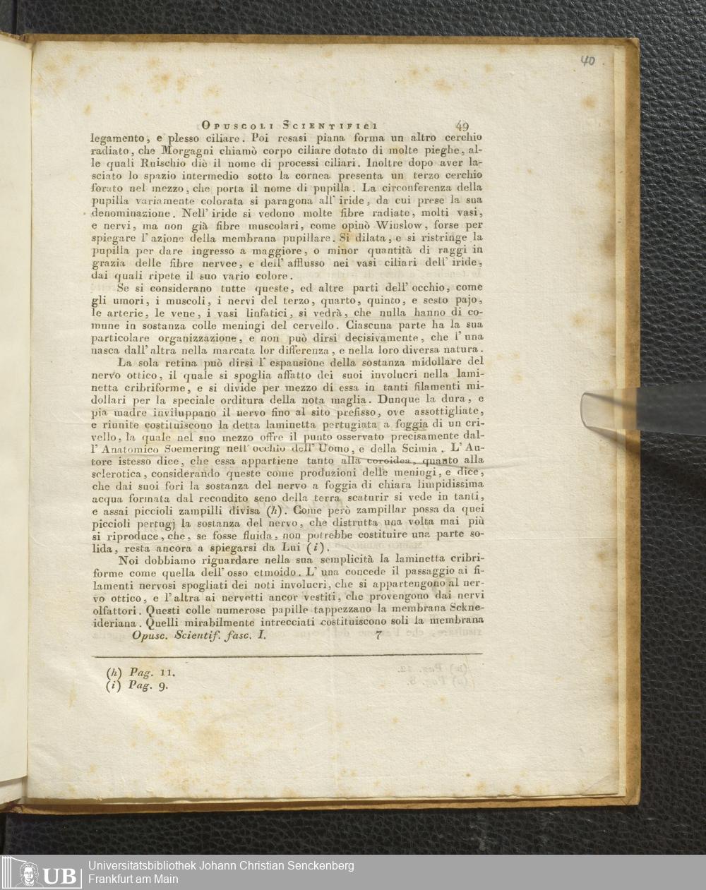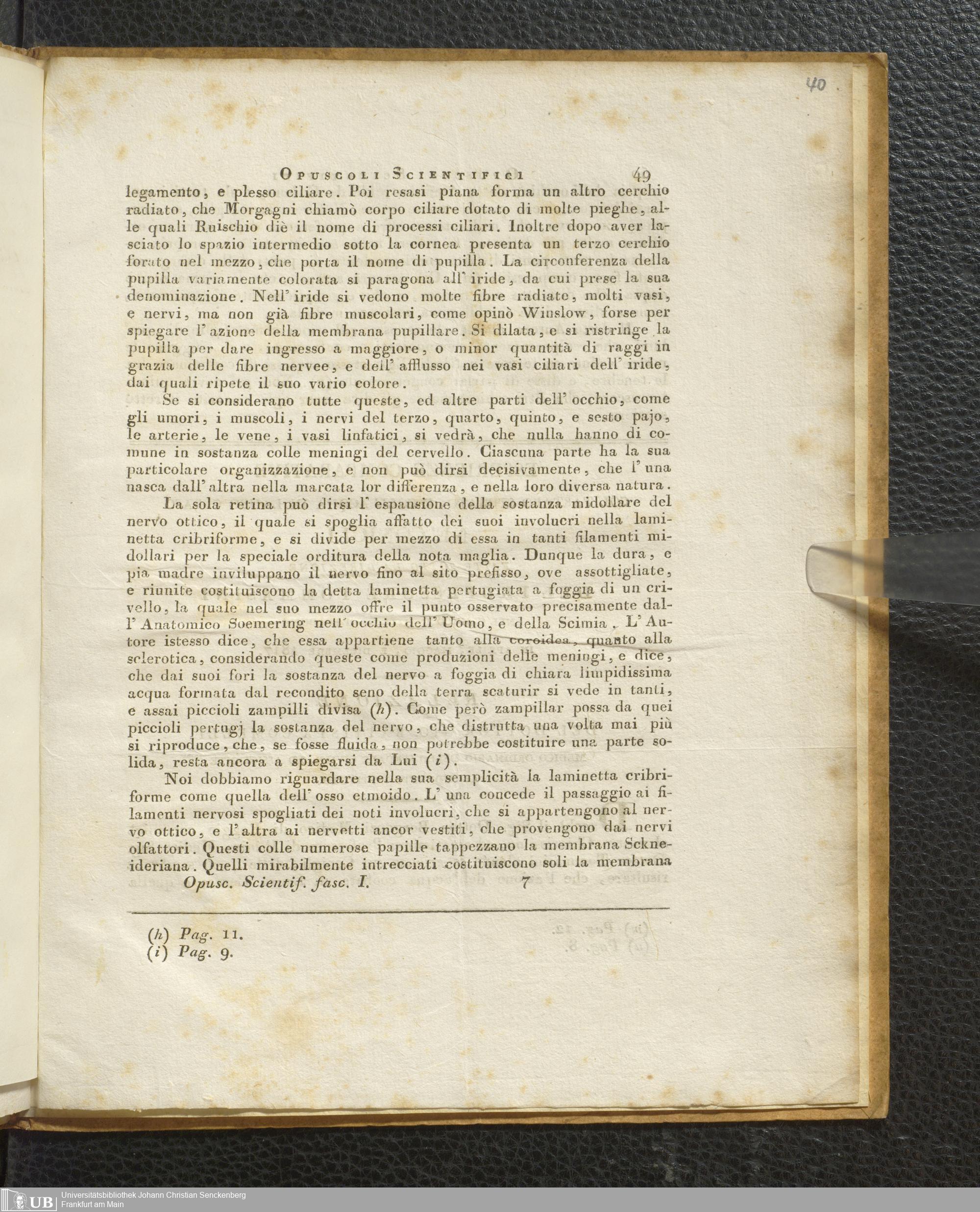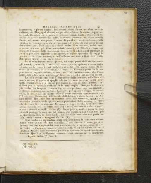 Soe 48 - Foramen centrale. Handexemplar von: Il Discorso del Dottore Felice Santis, Professore di medicina nella Università, Sull’uso, ed officio del Punto scoperto da Soemering nel fondo dell’occhio umano. Perugia, 1816. Mit umfangreichen Notizen/Exzerpten Soemmerrings.