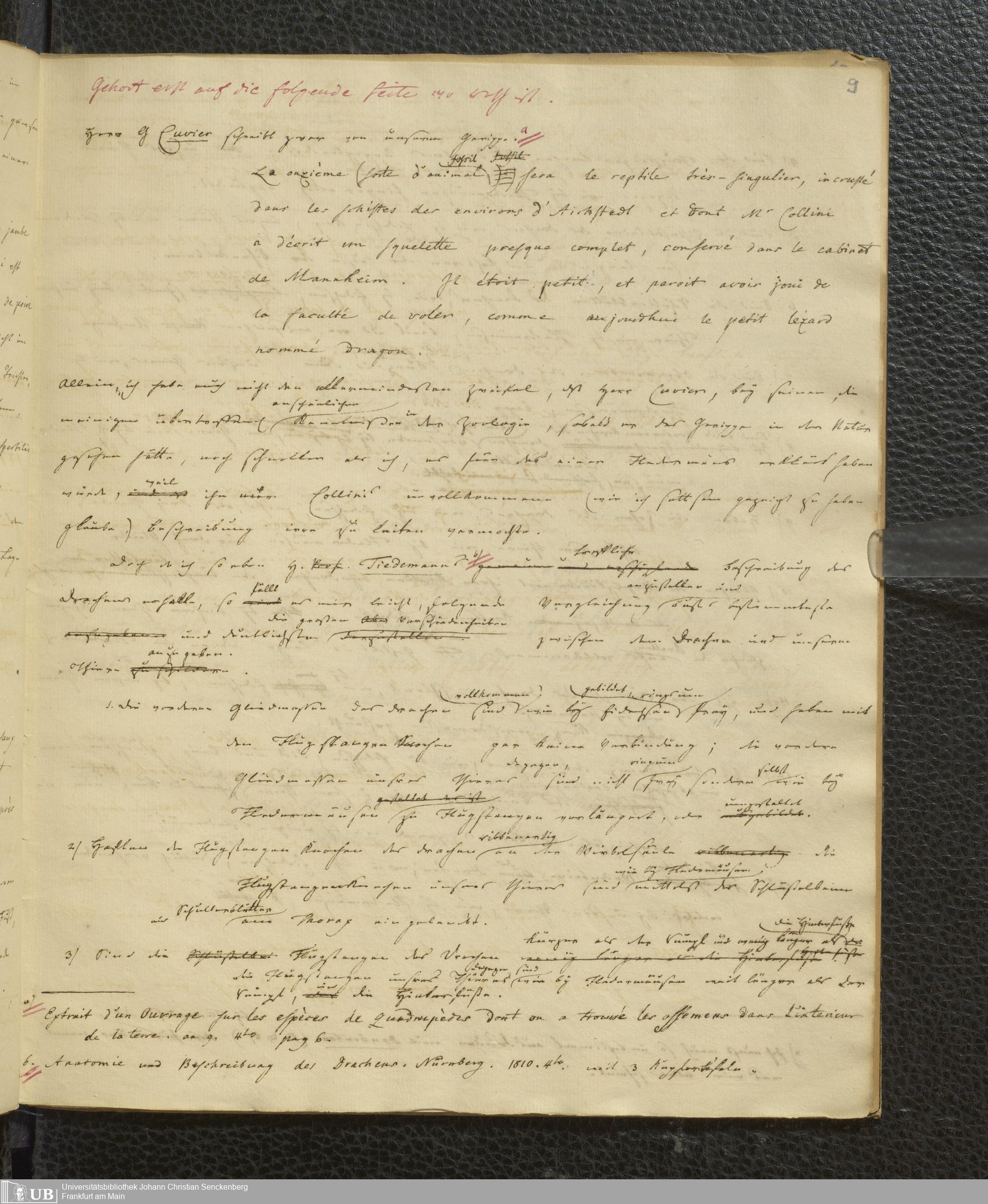 Soe 45 - Über einen Ornithocephalos oder über das unbekannte Thier der Vorwelt, dessen fossiles Gerippe C. Collini im fünften Bande der Actorum Academiae Theodoro-Palatinae nebst einer Abbildung in natürlicher Grösse im Jahre 1784 beschrieb, und welches Gerippe sich gegenwärtig in der Naturalien Sammlung der Königlichen Academie der Wissenschaften zu München befindet.
