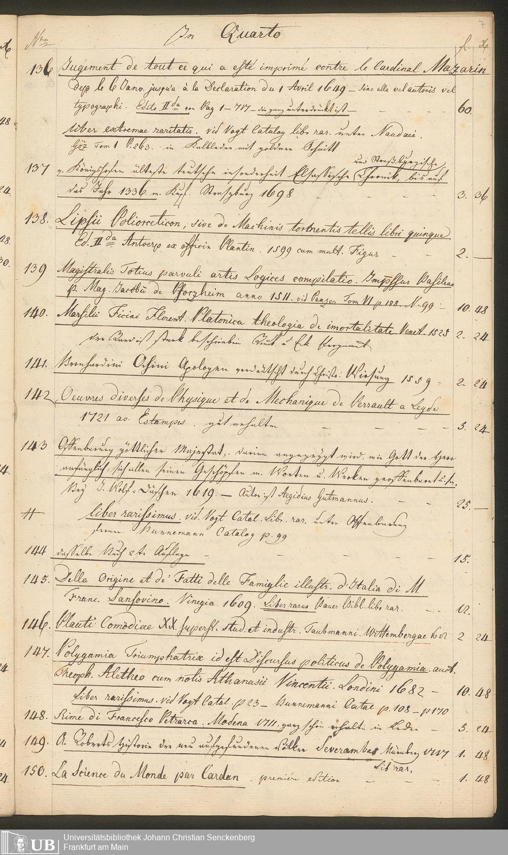 Ms. Ff. G. Kloß IV.7 - Katalog seltener Bücher