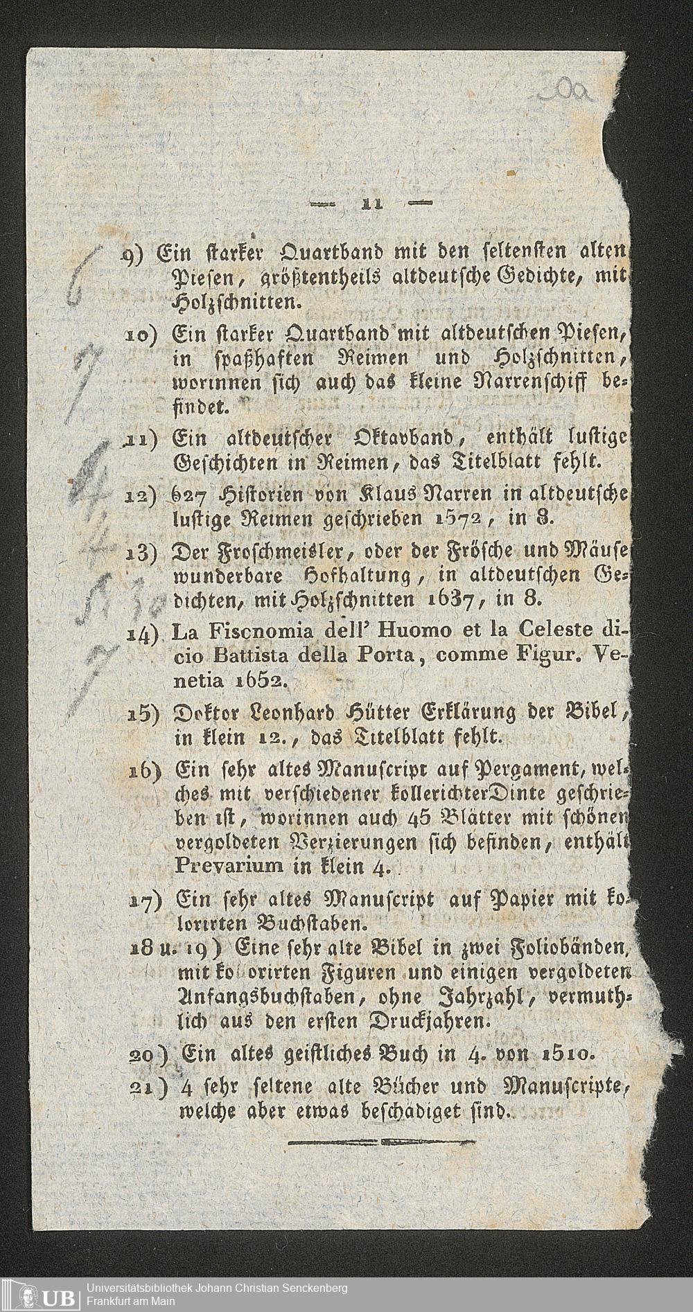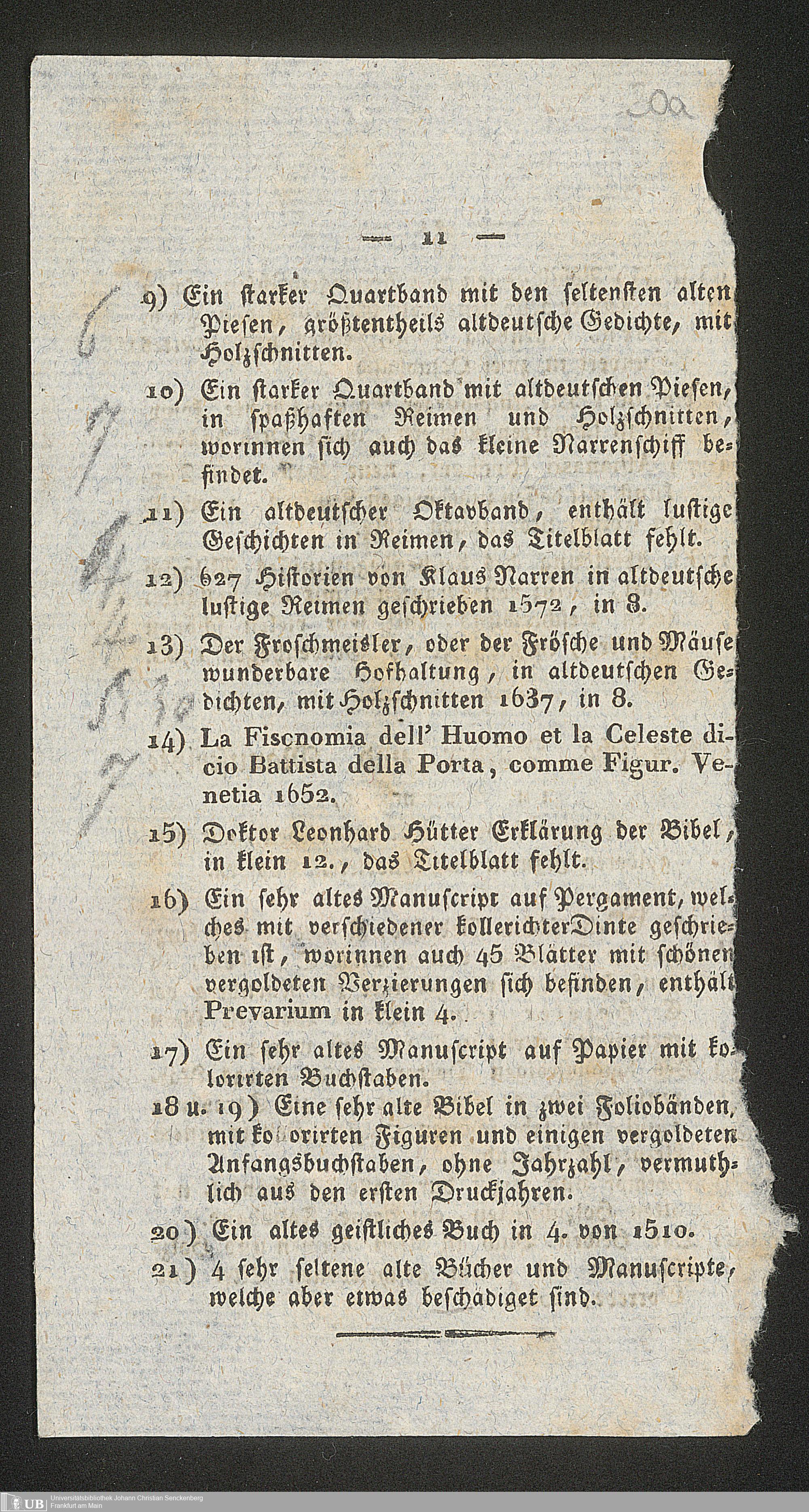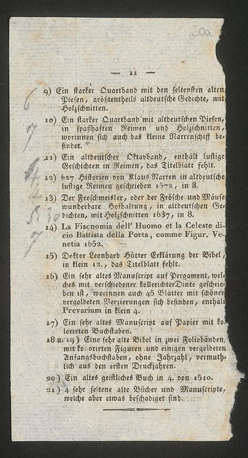 Ms. Ff. G. Kloß IV.7 - Katalog seltener Bücher