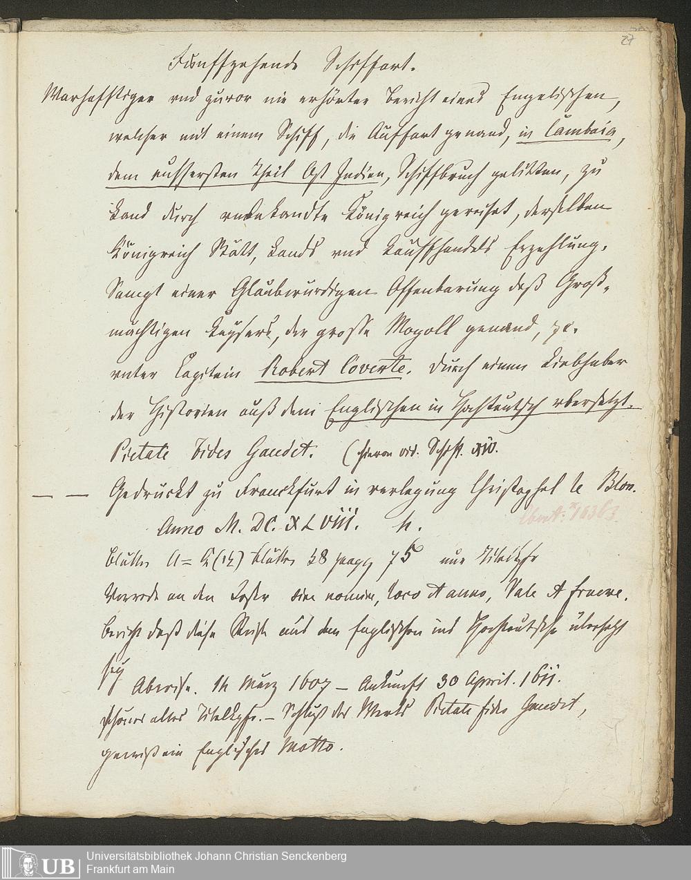 Ms. Ff. G. Kloß Nachlaßergänzung II.1 - Reisebeschreibungen. Ostindien und Amerika