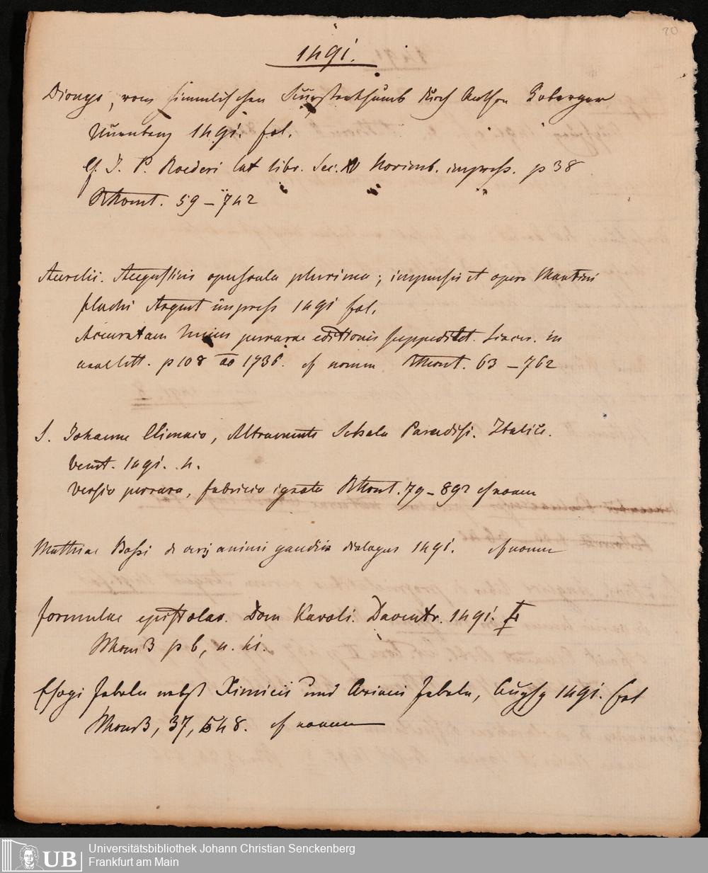 Ms. Ff. G. Kloß IV.4 - Materialien zu einer Bibliographie der Drucke. Chronologisch geordnet.