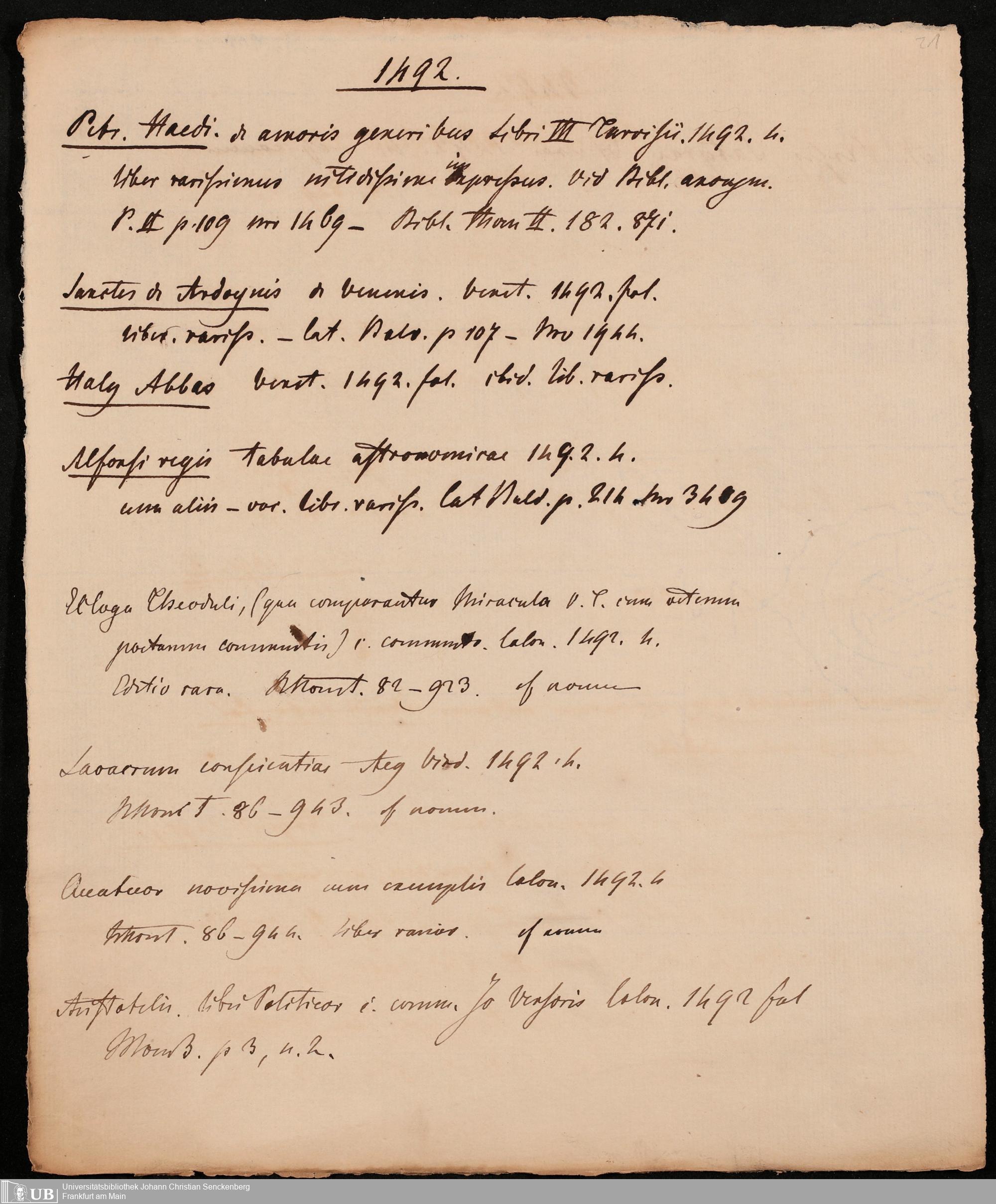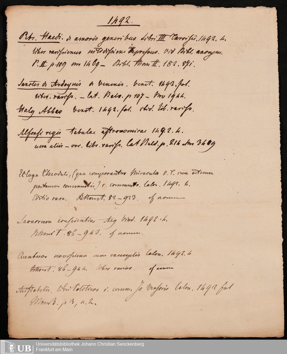 Ms. Ff. G. Kloß IV.4 - Materialien zu einer Bibliographie der Drucke. Chronologisch geordnet.