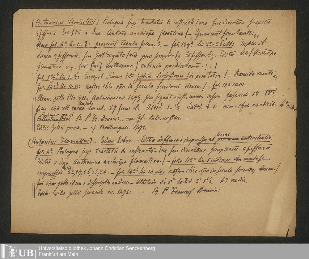 Ms. Ff. G. Kloß IV.3 - Materialien zu einer Bibliographie der Wiegendrucke (A-B). Geordnet nach dem Alphabet der Autoren und Sachtitel.