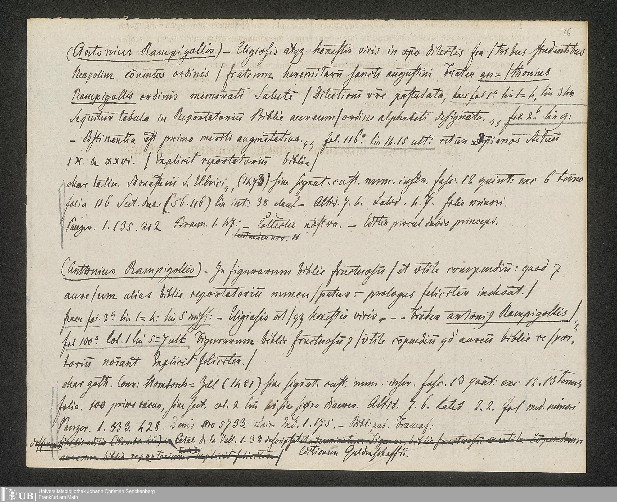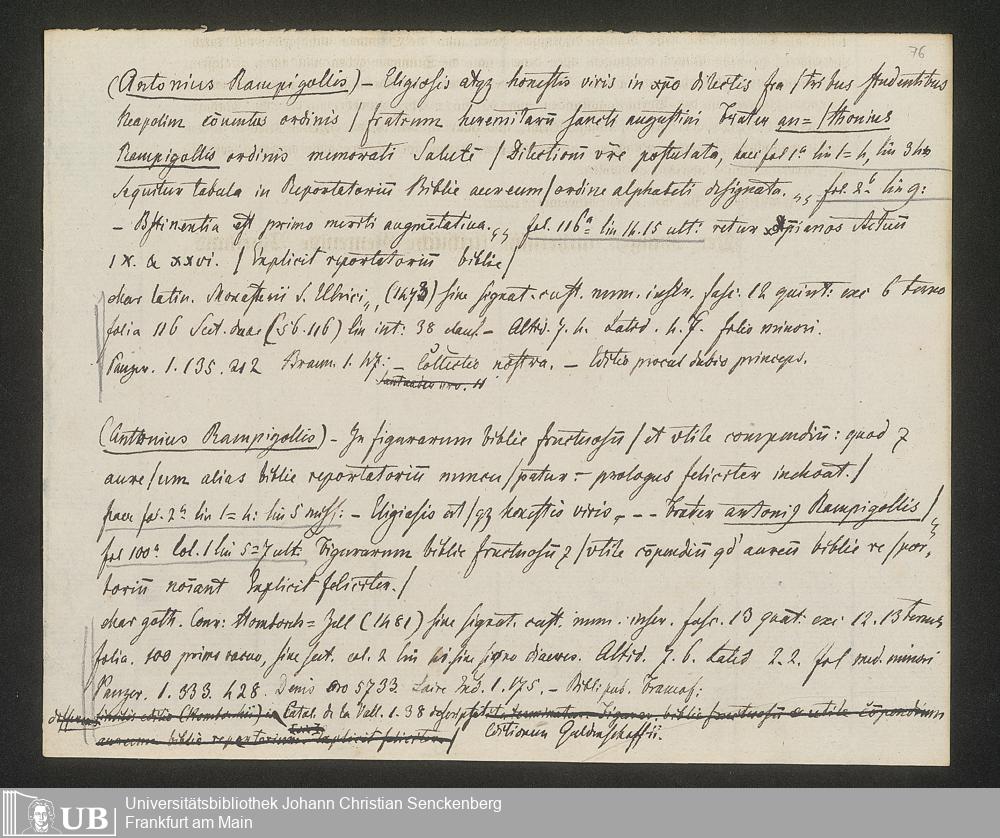 Ms. Ff. G. Kloß IV.3 - Materialien zu einer Bibliographie der Wiegendrucke (A-B). Geordnet nach dem Alphabet der Autoren und Sachtitel.