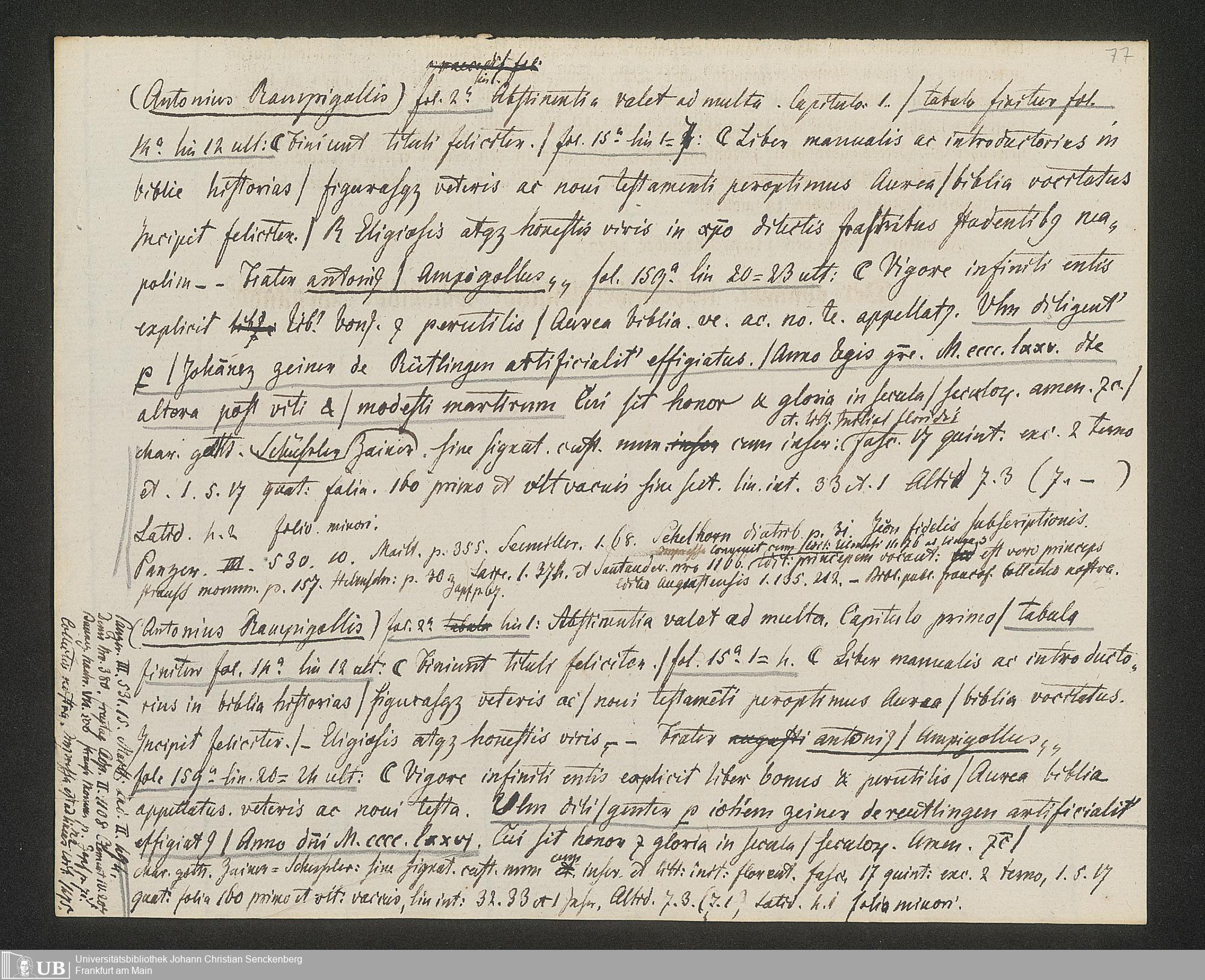 Ms. Ff. G. Kloß IV.3 - Materialien zu einer Bibliographie der Wiegendrucke (A-B). Geordnet nach dem Alphabet der Autoren und Sachtitel.