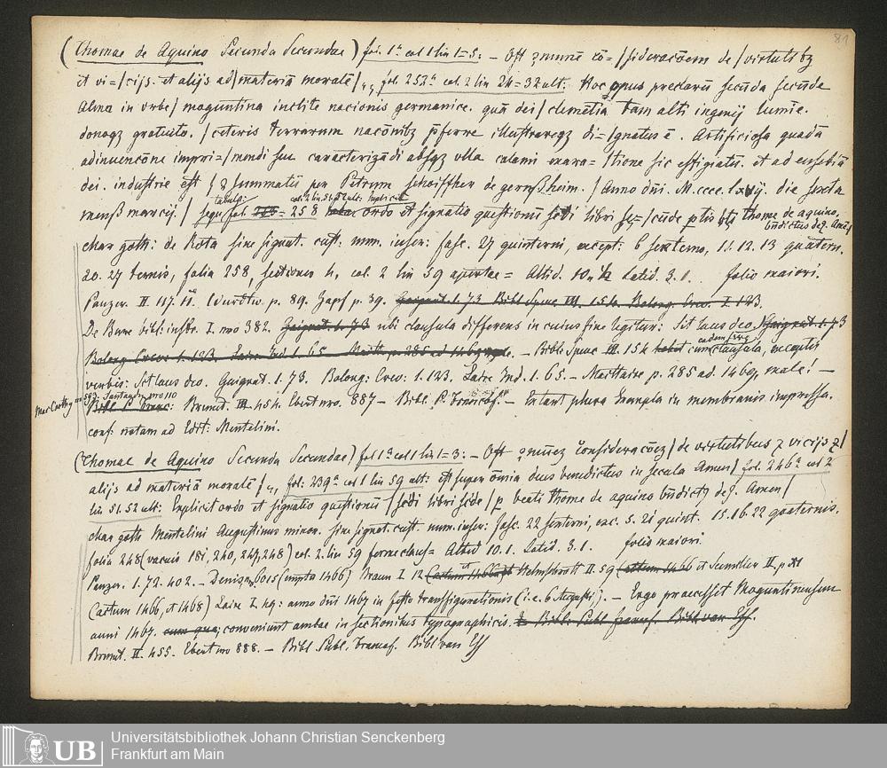 Ms. Ff. G. Kloß IV.3 - Materialien zu einer Bibliographie der Wiegendrucke (A-B). Geordnet nach dem Alphabet der Autoren und Sachtitel.