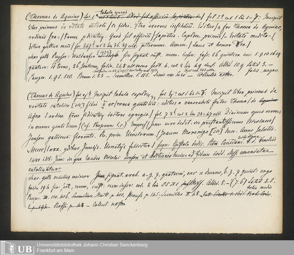 Ms. Ff. G. Kloß IV.3 - Materialien zu einer Bibliographie der Wiegendrucke (A-B). Geordnet nach dem Alphabet der Autoren und Sachtitel.