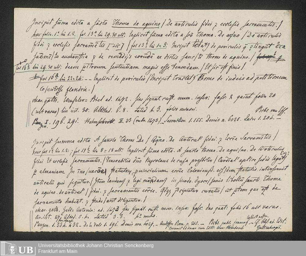 Ms. Ff. G. Kloß IV.3 - Materialien zu einer Bibliographie der Wiegendrucke (A-B). Geordnet nach dem Alphabet der Autoren und Sachtitel.