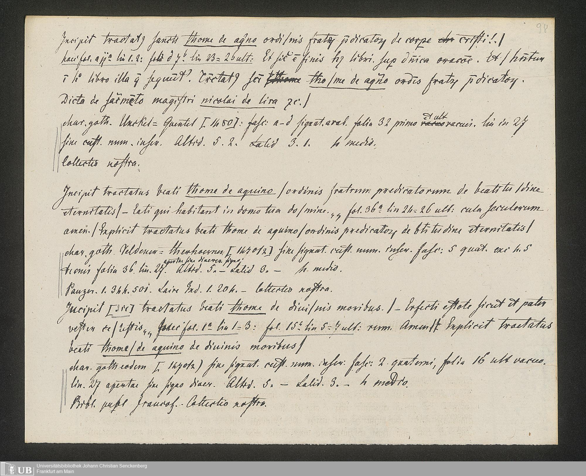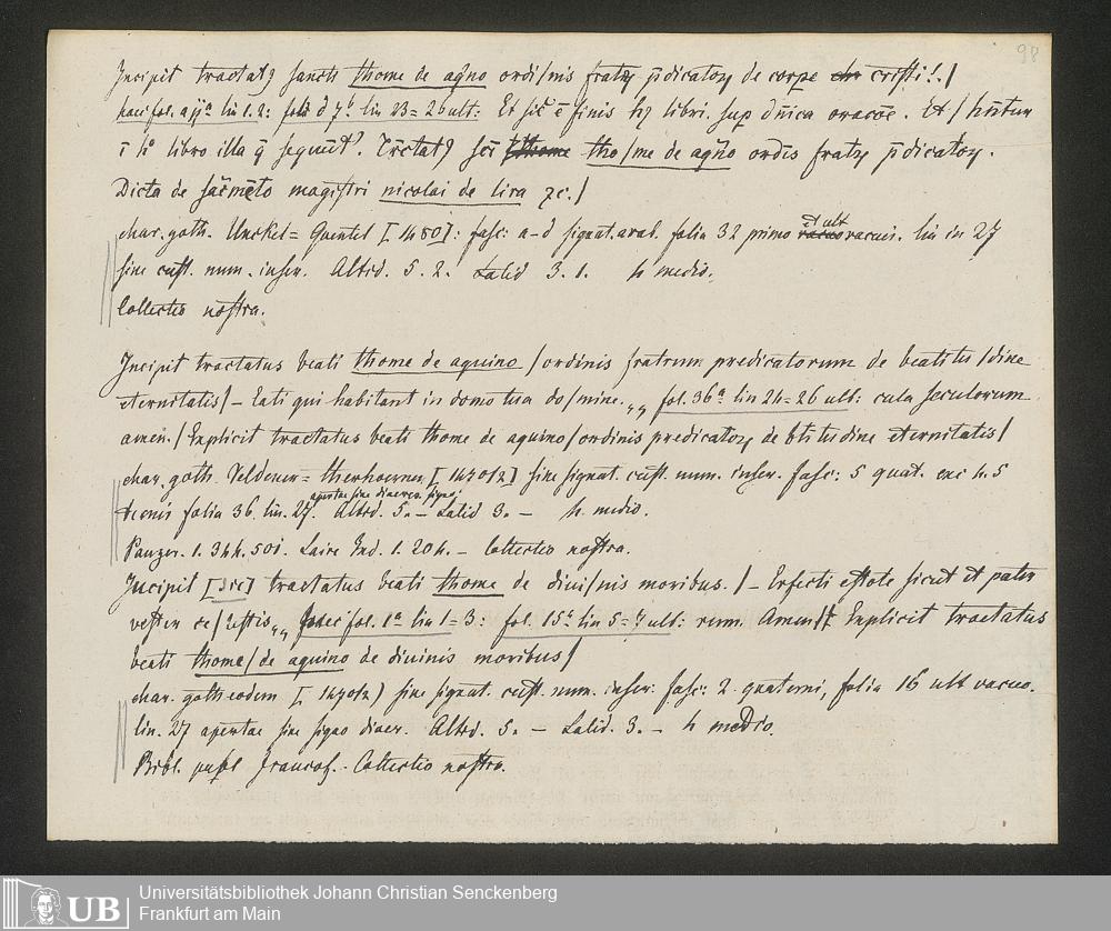 Ms. Ff. G. Kloß IV.3 - Materialien zu einer Bibliographie der Wiegendrucke (A-B). Geordnet nach dem Alphabet der Autoren und Sachtitel.