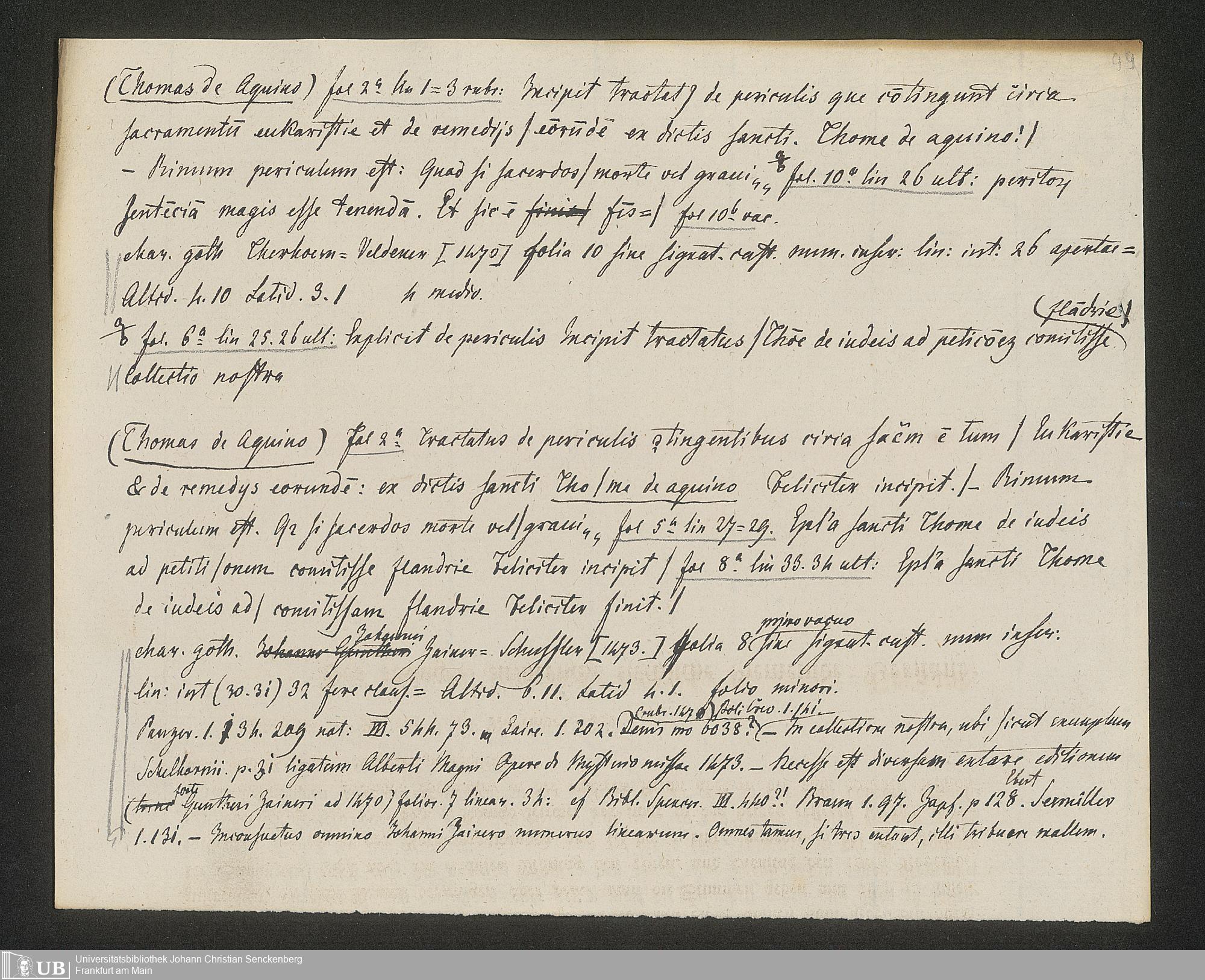 Ms. Ff. G. Kloß IV.3 - Materialien zu einer Bibliographie der Wiegendrucke (A-B). Geordnet nach dem Alphabet der Autoren und Sachtitel.