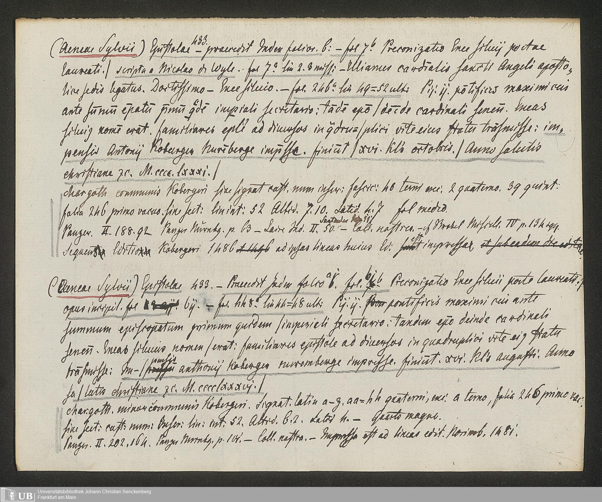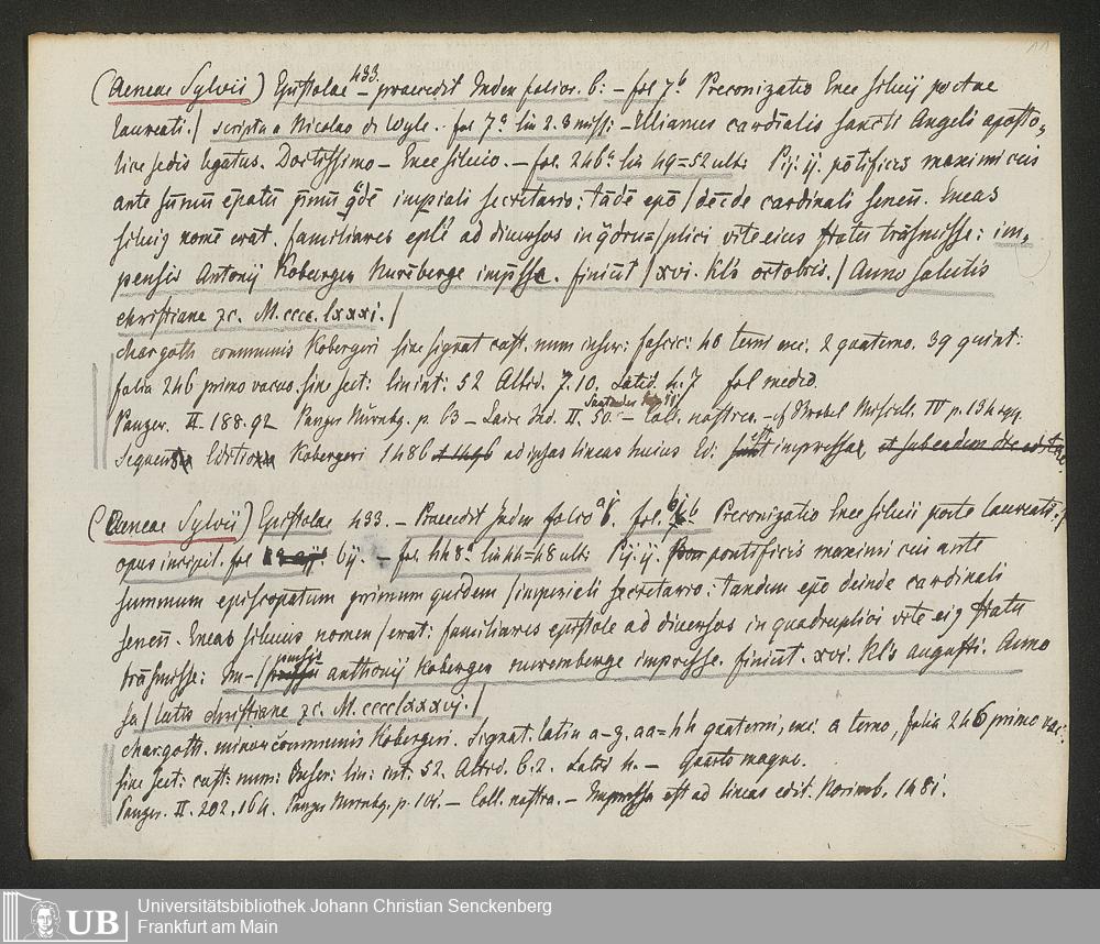 Ms. Ff. G. Kloß IV.3 - Materialien zu einer Bibliographie der Wiegendrucke (A-B). Geordnet nach dem Alphabet der Autoren und Sachtitel.