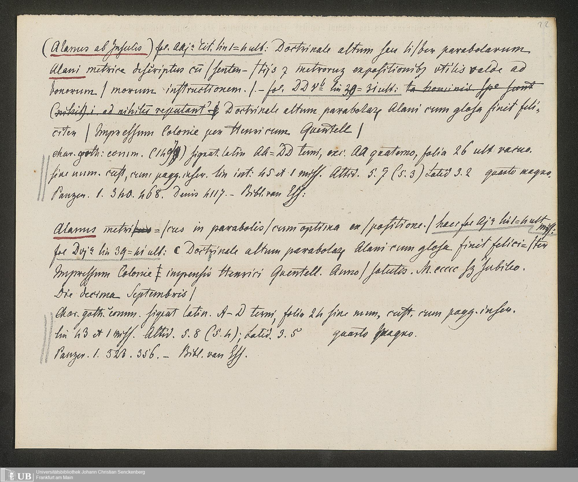 Ms. Ff. G. Kloß IV.3 - Materialien zu einer Bibliographie der Wiegendrucke (A-B). Geordnet nach dem Alphabet der Autoren und Sachtitel.