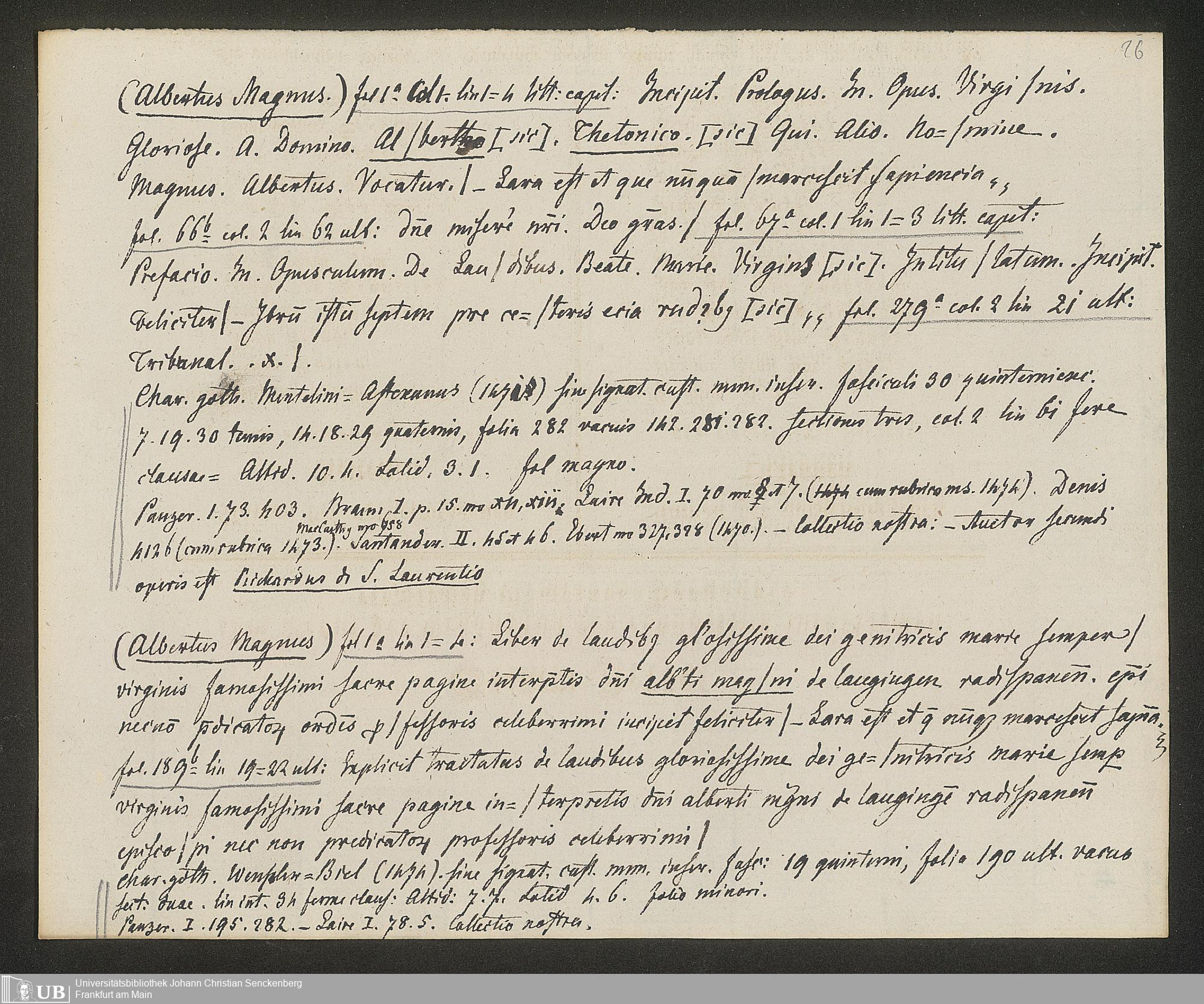 Ms. Ff. G. Kloß IV.3 - Materialien zu einer Bibliographie der Wiegendrucke (A-B). Geordnet nach dem Alphabet der Autoren und Sachtitel.