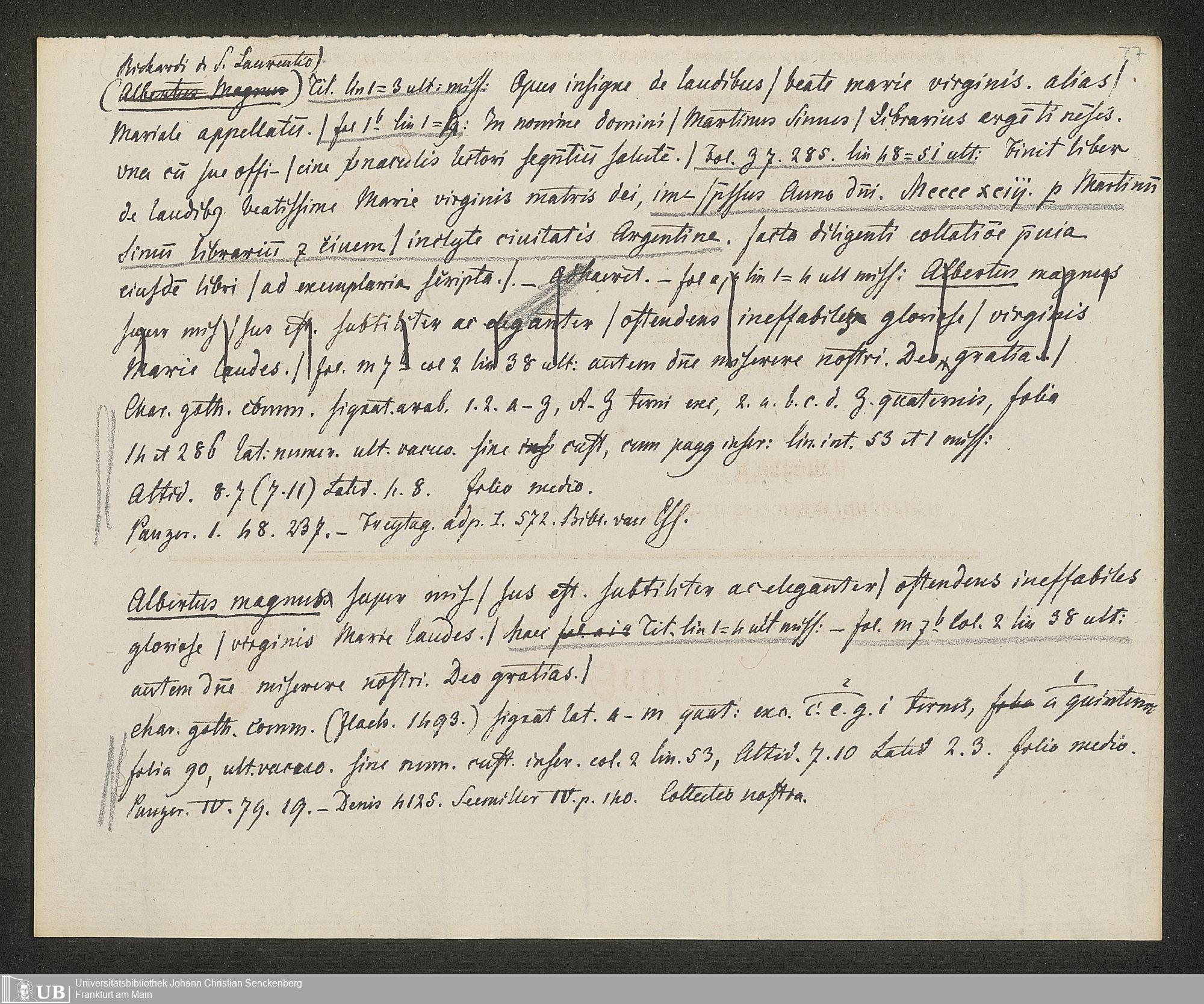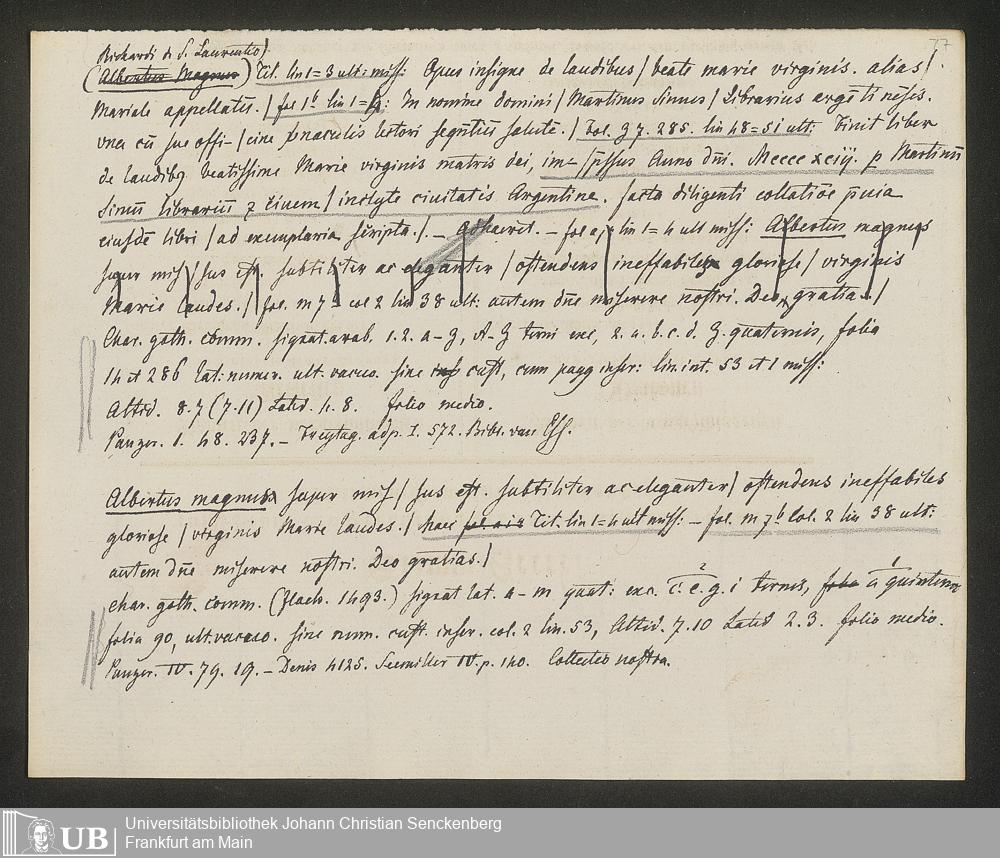 Ms. Ff. G. Kloß IV.3 - Materialien zu einer Bibliographie der Wiegendrucke (A-B). Geordnet nach dem Alphabet der Autoren und Sachtitel.