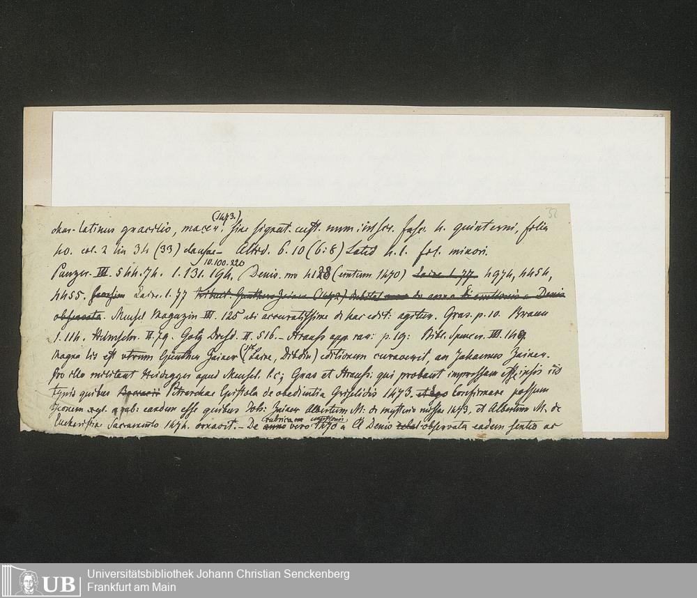 Ms. Ff. G. Kloß IV.3 - Materialien zu einer Bibliographie der Wiegendrucke (A-B). Geordnet nach dem Alphabet der Autoren und Sachtitel.