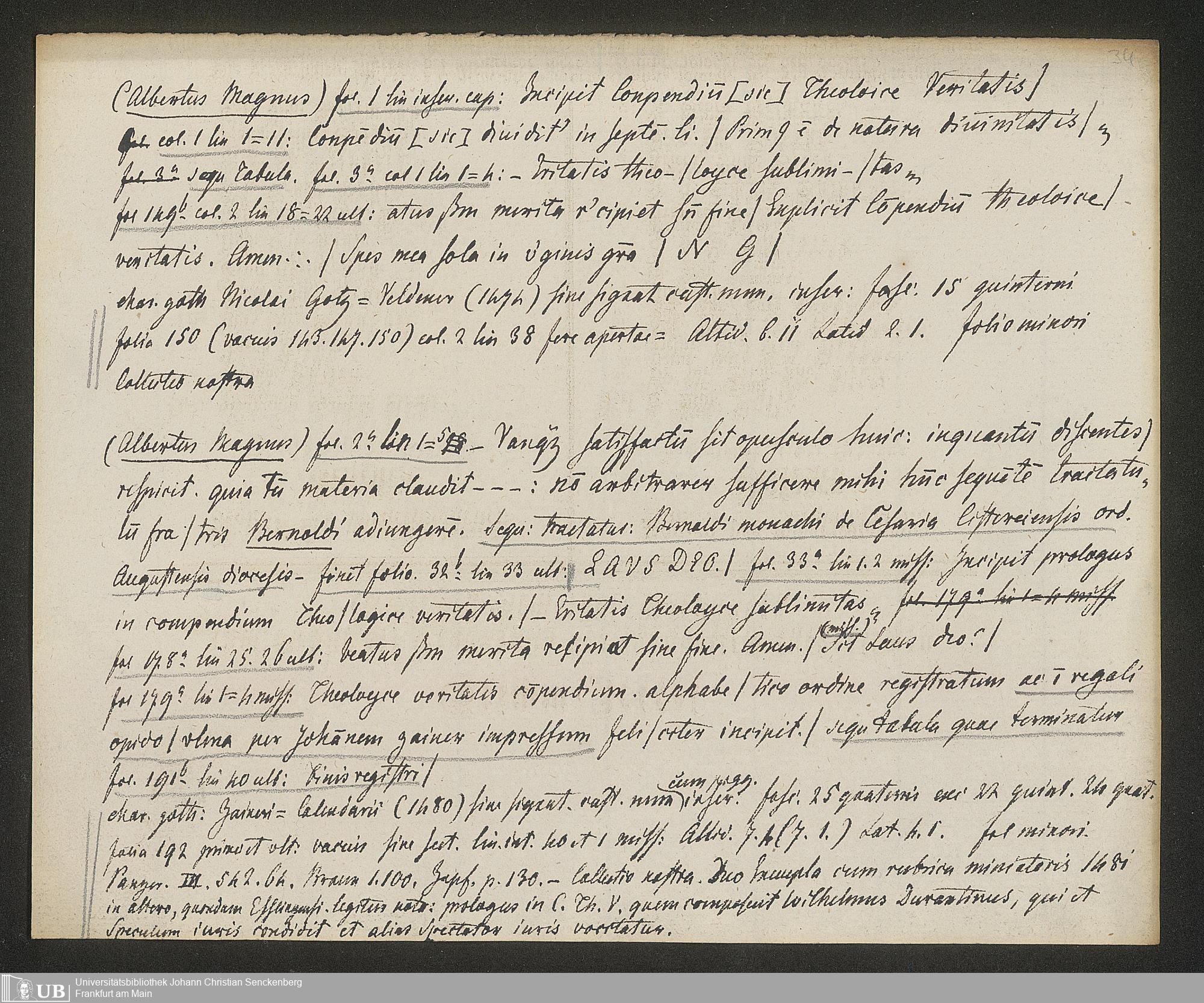 Ms. Ff. G. Kloß IV.3 - Materialien zu einer Bibliographie der Wiegendrucke (A-B). Geordnet nach dem Alphabet der Autoren und Sachtitel.