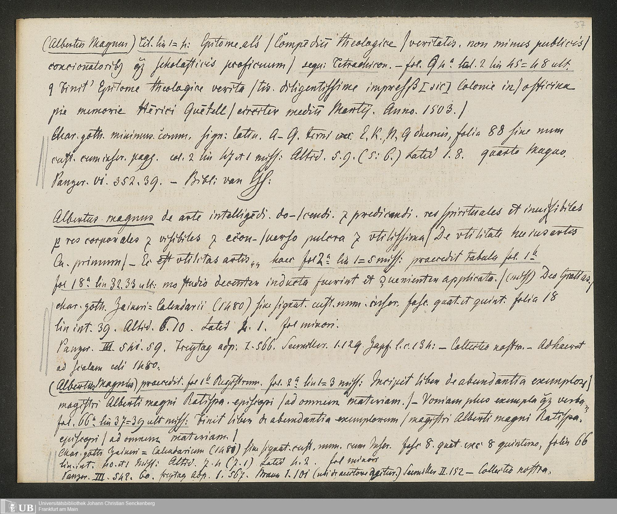 Ms. Ff. G. Kloß IV.3 - Materialien zu einer Bibliographie der Wiegendrucke (A-B). Geordnet nach dem Alphabet der Autoren und Sachtitel.